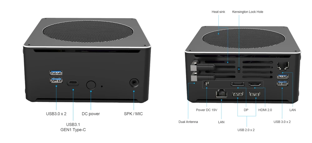 -Матовый корпус черного цвета из алюминиевого сплава, изысканное производство по внешнему дизайну.-Встроенный бесшумный медный вентилятор для рассеивания тепла может поддерживать работу компьютера в течение длительного времени.-Одно отверстие для замка Kensington обеспечивает безопасность компьютера в школе, офисе, гостинице и т. д.-Поддержка VT-x, PXE, RTC, Wake on LAN, автоматическое включение.2. Не покупайте мини-ПК («No Ram No HD No WiFi»), если вы не являетесь аппаратным техником. ПК требует профессионального мастерства для сборки. Мы не компенсируем вред, причиненный покупателю, и неисправность.
