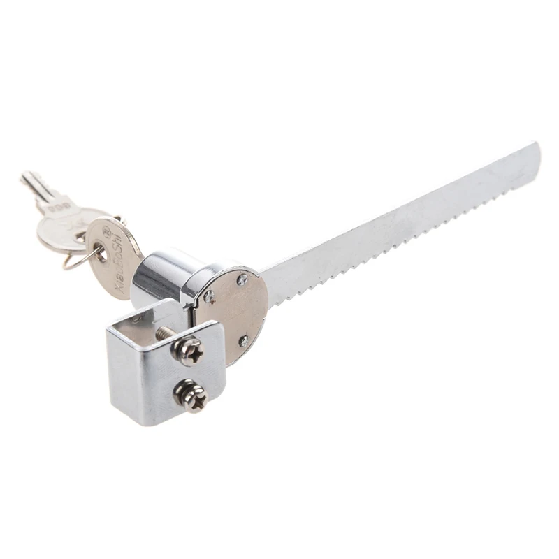 Без 2 болтов офисное стекло витрина шкаф счетчик скользящее лезвие пильный замок w ключи Серебряный тон.
