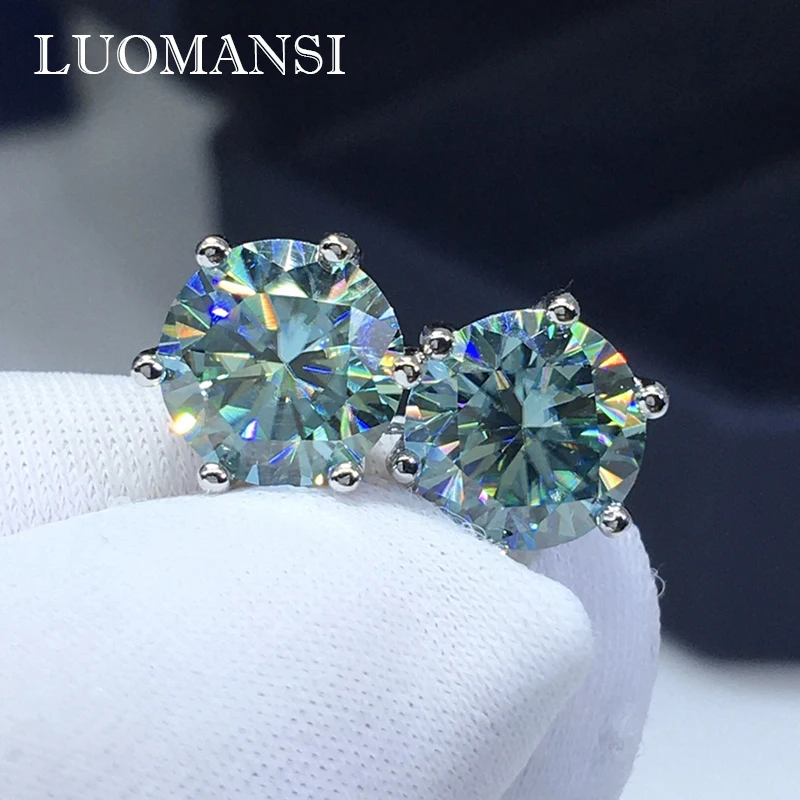 Earring gemstones: 2+2CT 8MM green moissanite (passed drilling test + GRA certificate)