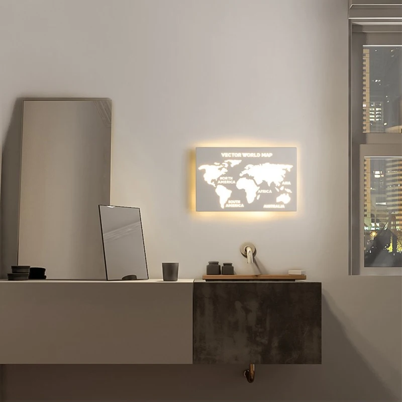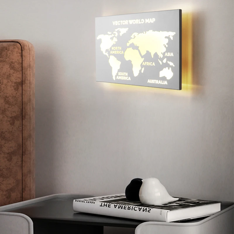 Современные светодиодные Настенные светильники для спальни, гостиной, кухни, внутреннего освещения, прохода, прикроватные светильники для отеля, Карта мира, бра, лампа