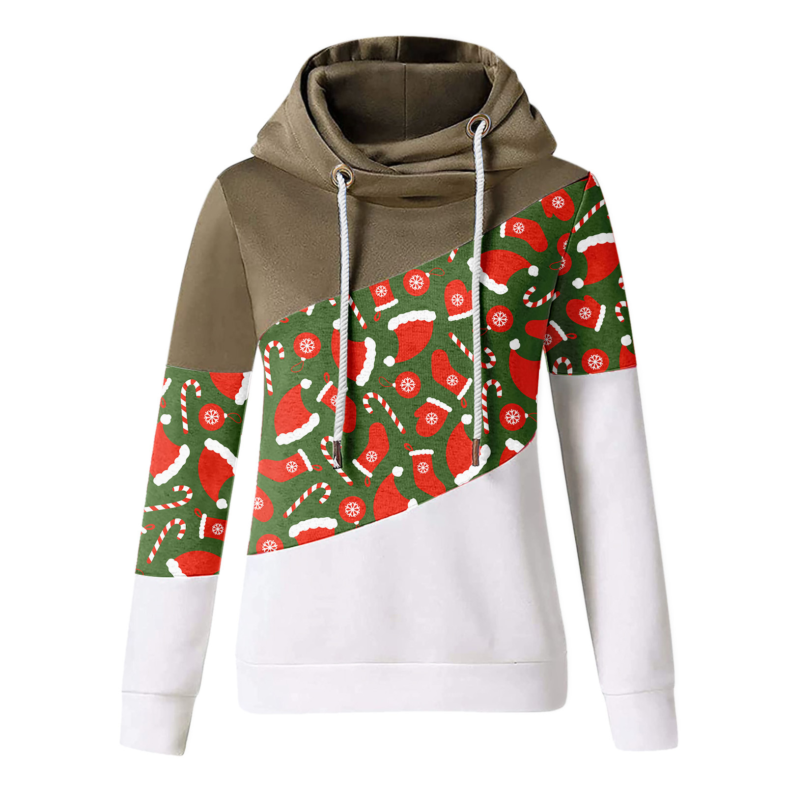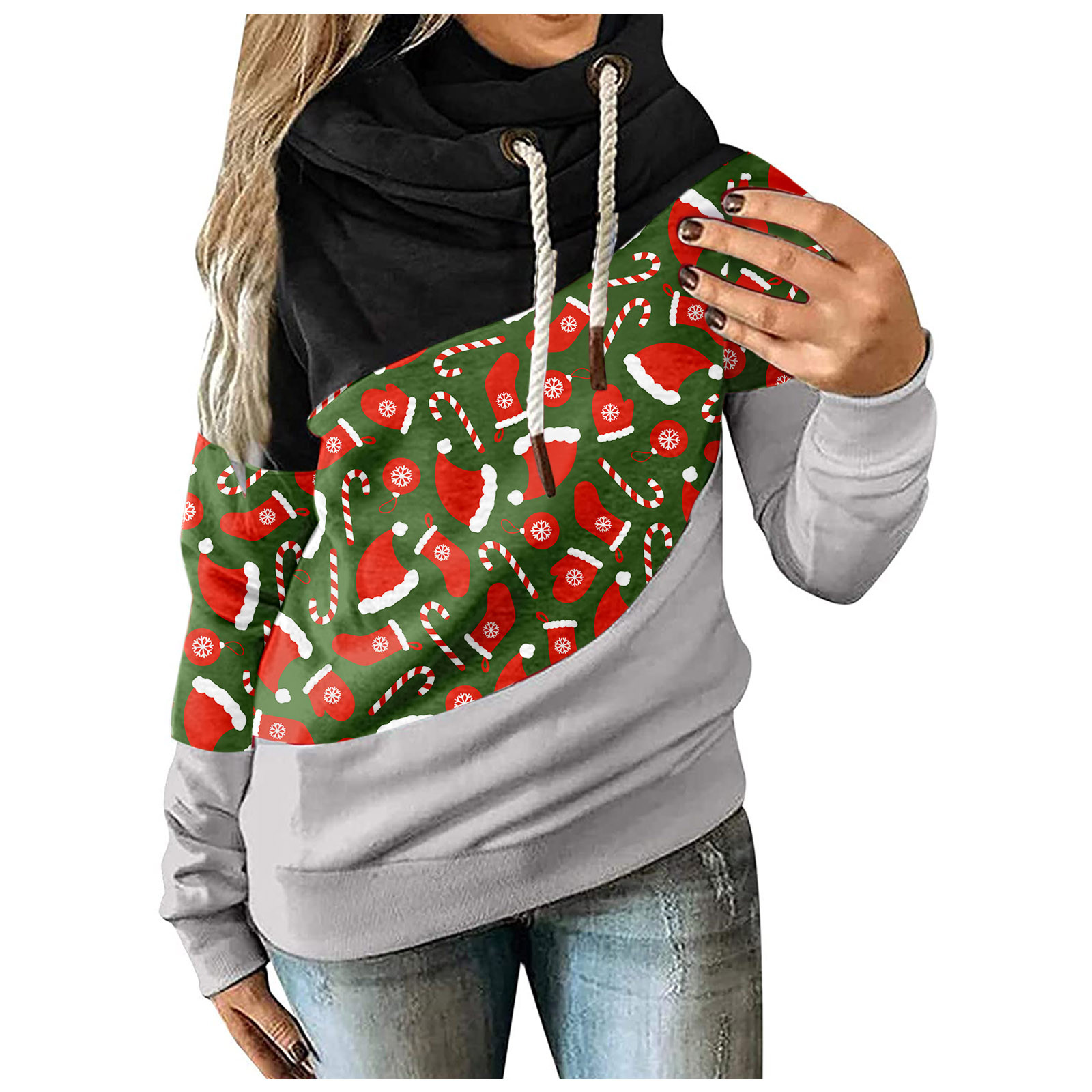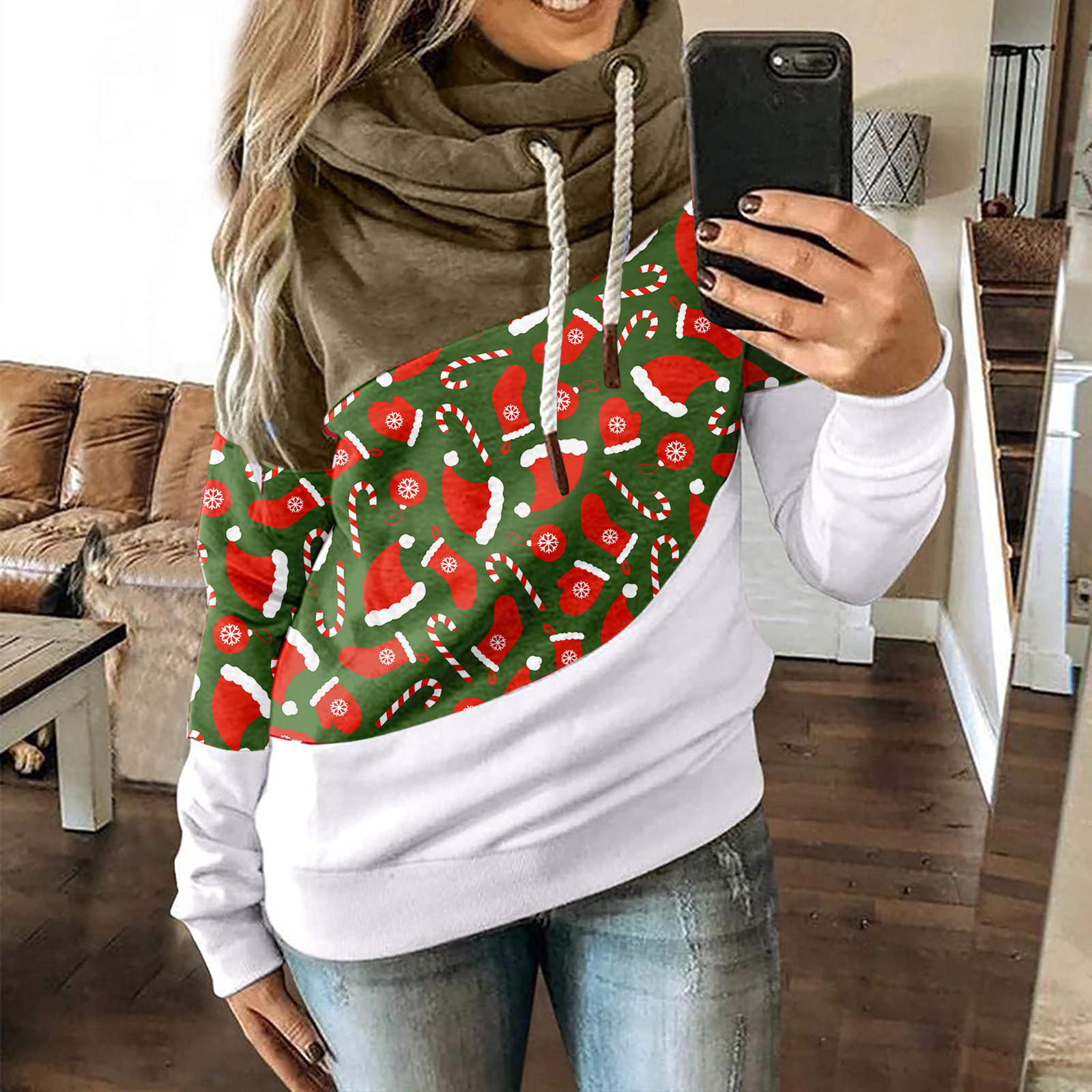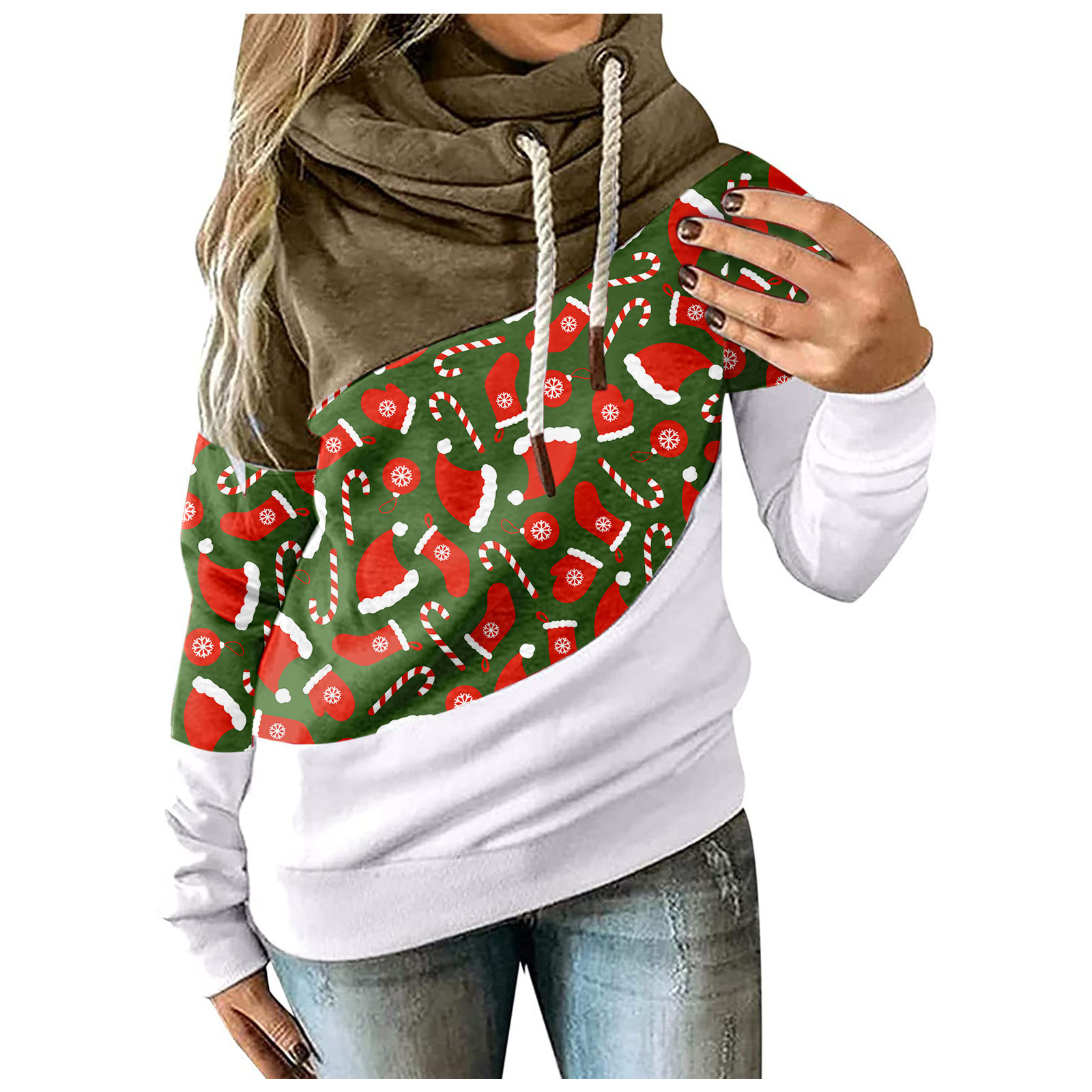 Женская рождественская трикотажная кофта с длинными рукавами и капюшоном