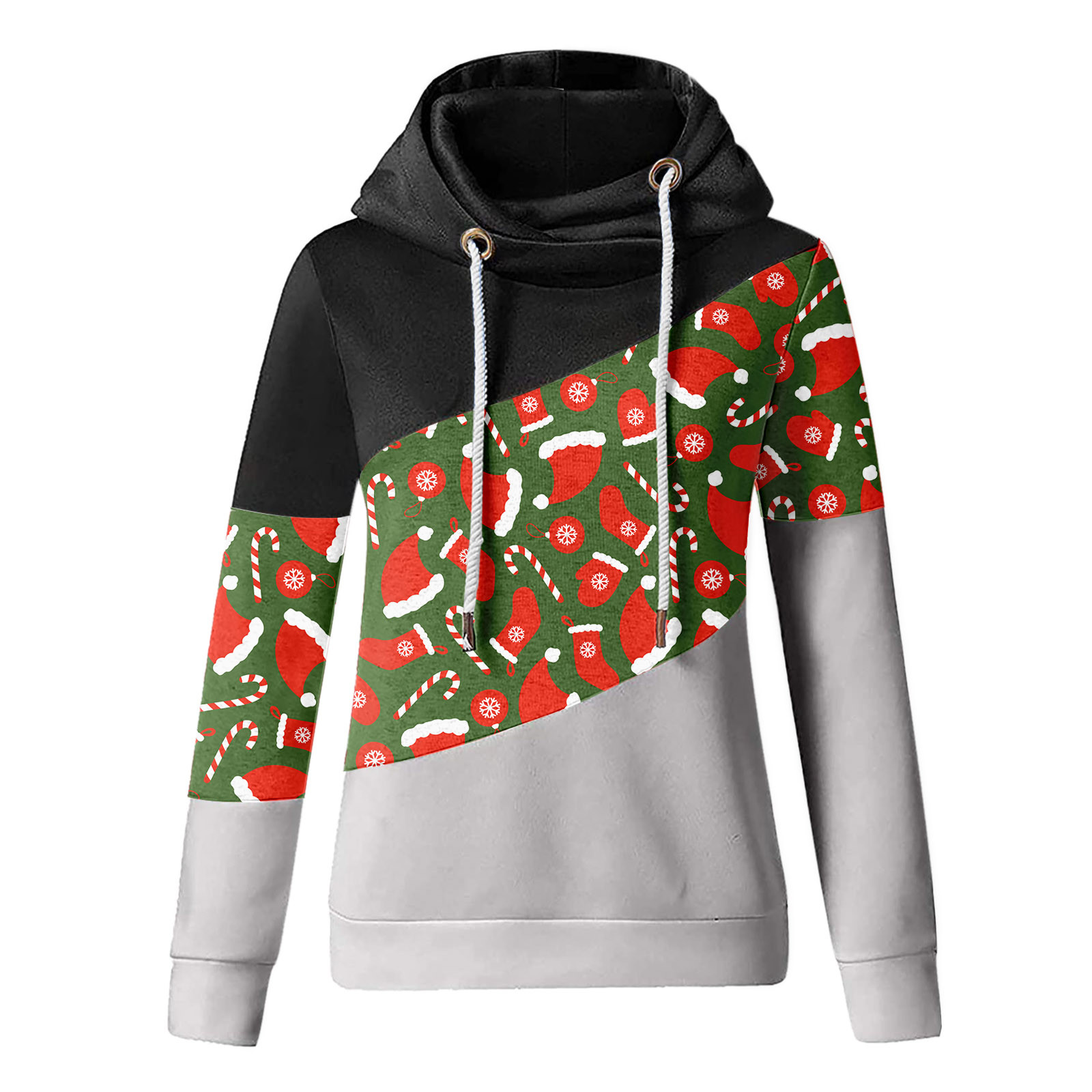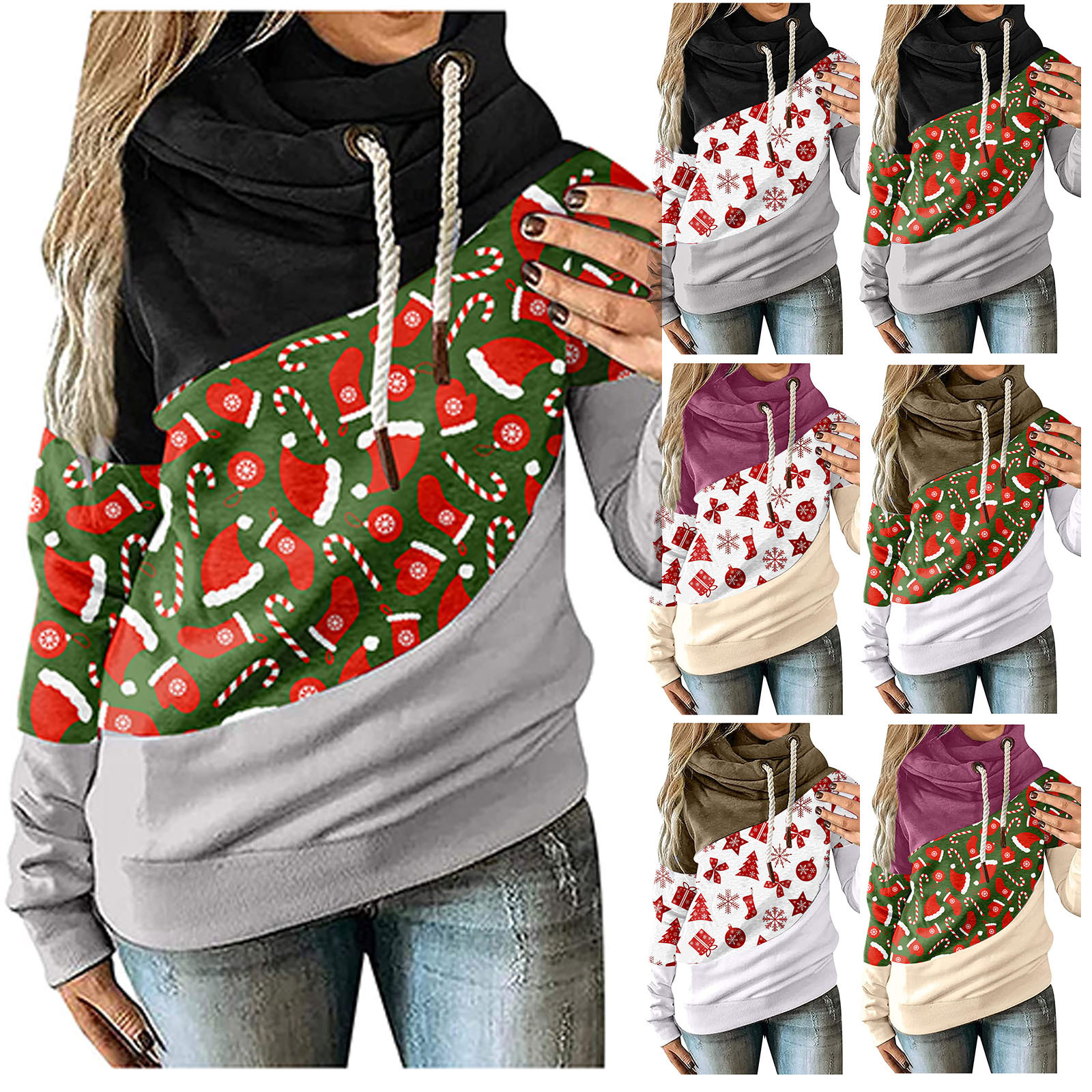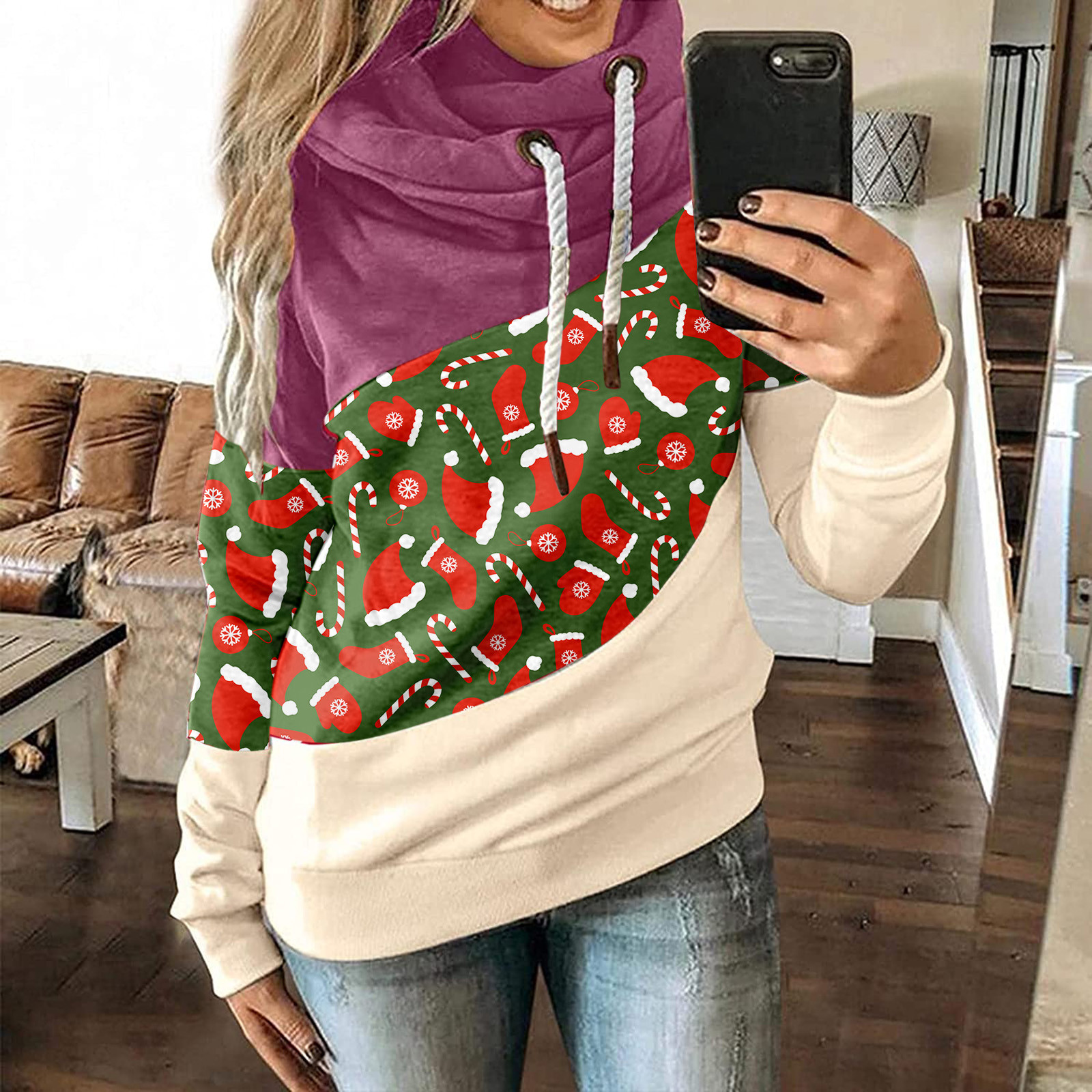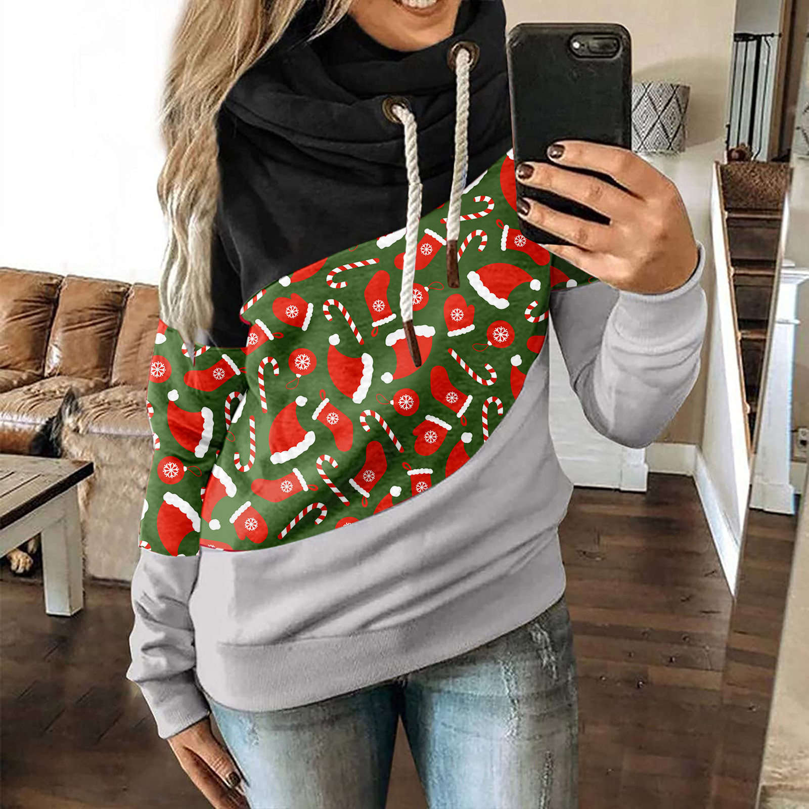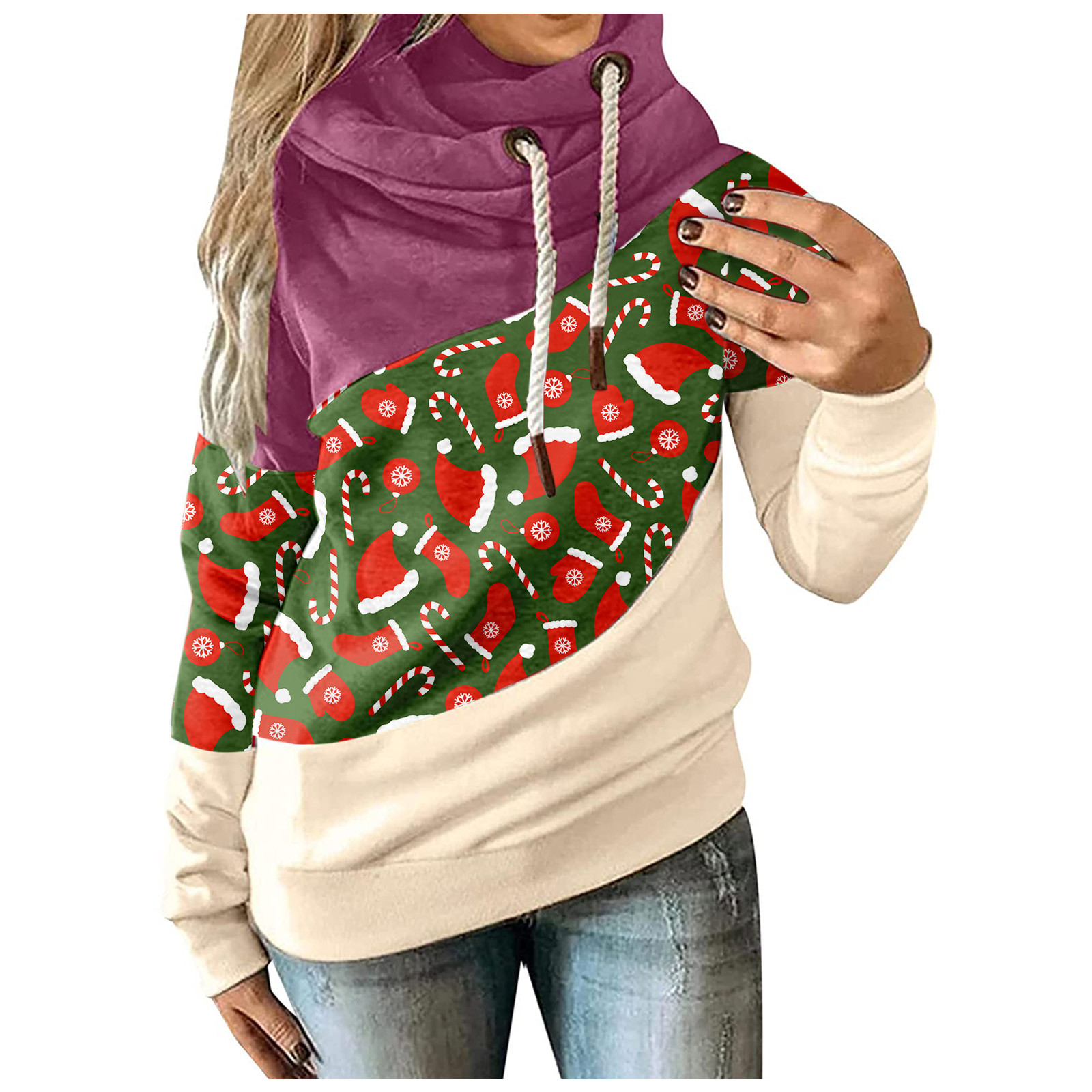 Женская рождественская трикотажная кофта с длинными рукавами и капюшоном