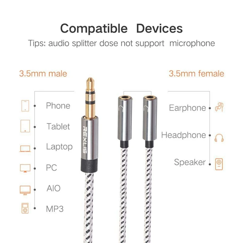 От REXLIS 3,5 мм стерео аудио гарнитуры к кабелю для подключения внешних устройств Мужской до 2 Женский аудио Y сплиттер адатер, позволяет делиться музыкой с вашего любовника/друзей, семьи, наслаждайтесь жизнь веселее!
