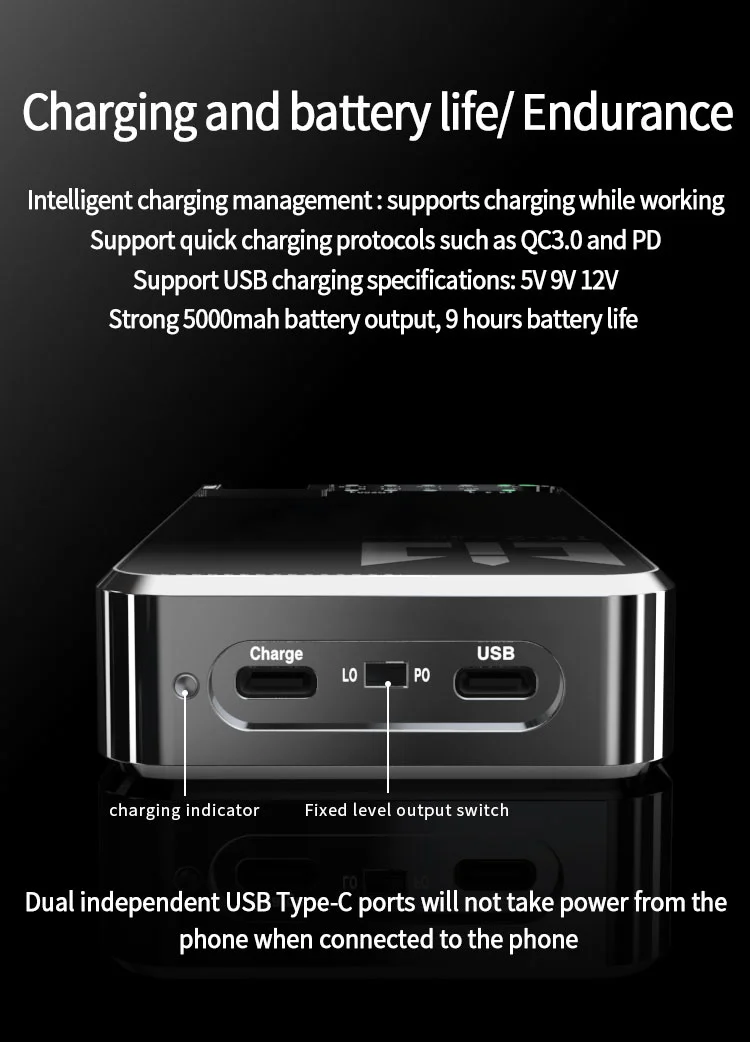 14. Интерфейс зарядки: TYPE-C [поддерживает быструю зарядку QC3.0 или PD (можно использовать во время зарядки)] |