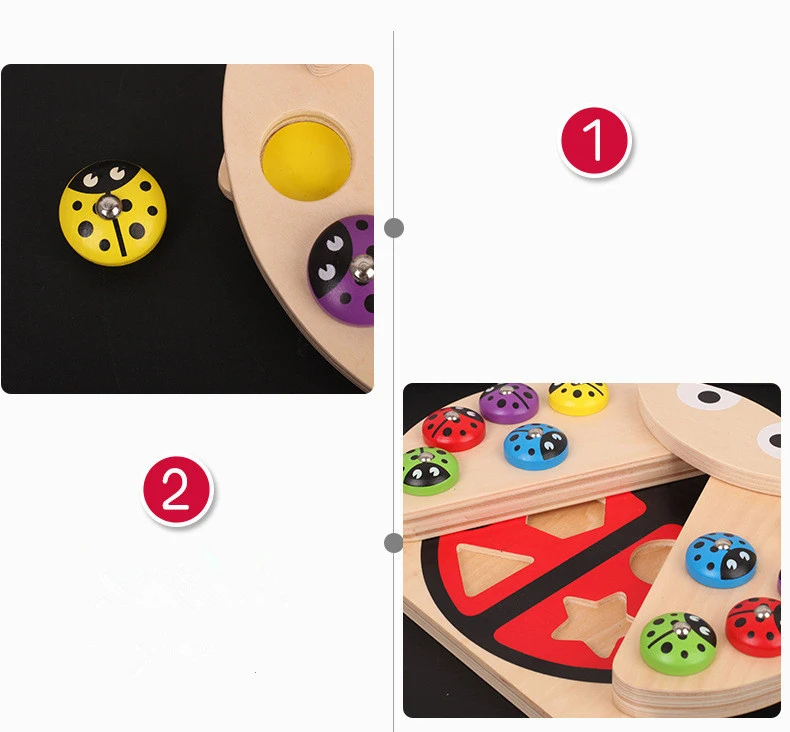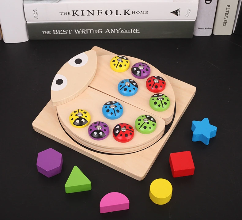 Деревянные развивающие игрушки Монтессори, Детские Магнитные Игрушки Божья коровка, игрушки для рыбалки, Цветные Игрушки для раннего обучения, детские игрушки