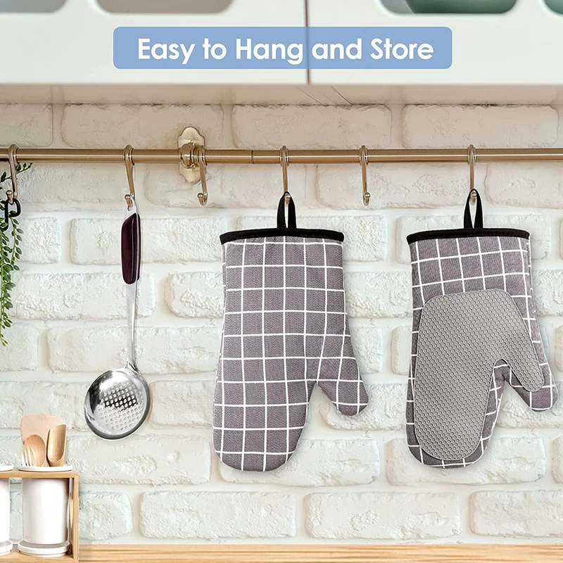 [Multifunction]Our oven gloves heat resistant kitchen non slip are suitable for stoves, microwaves, grills, outdoor kitchens, fireplaces, etc. Perfectly designed with a loop for easy hanging.