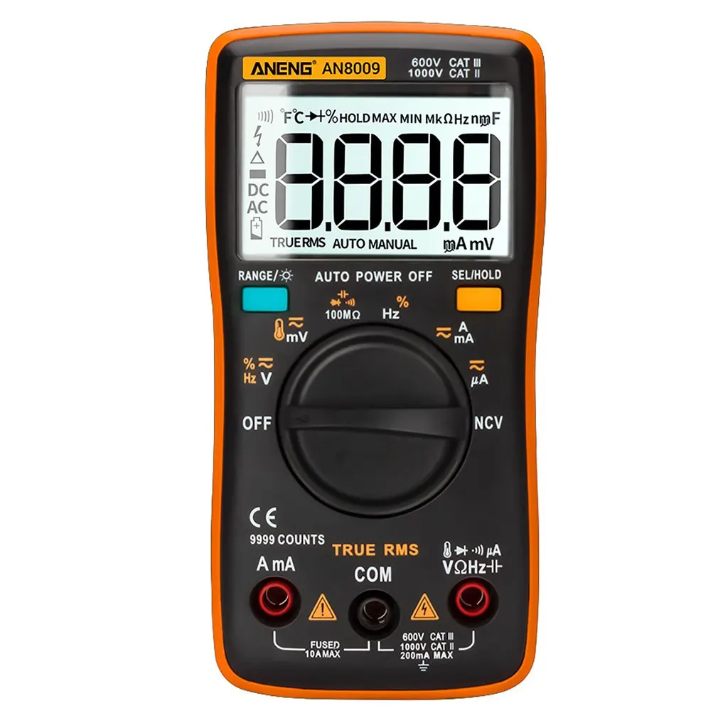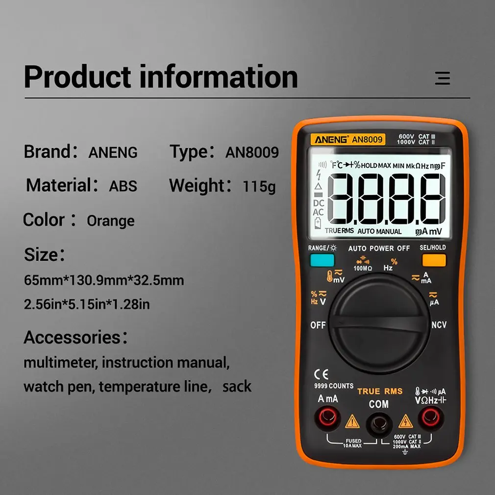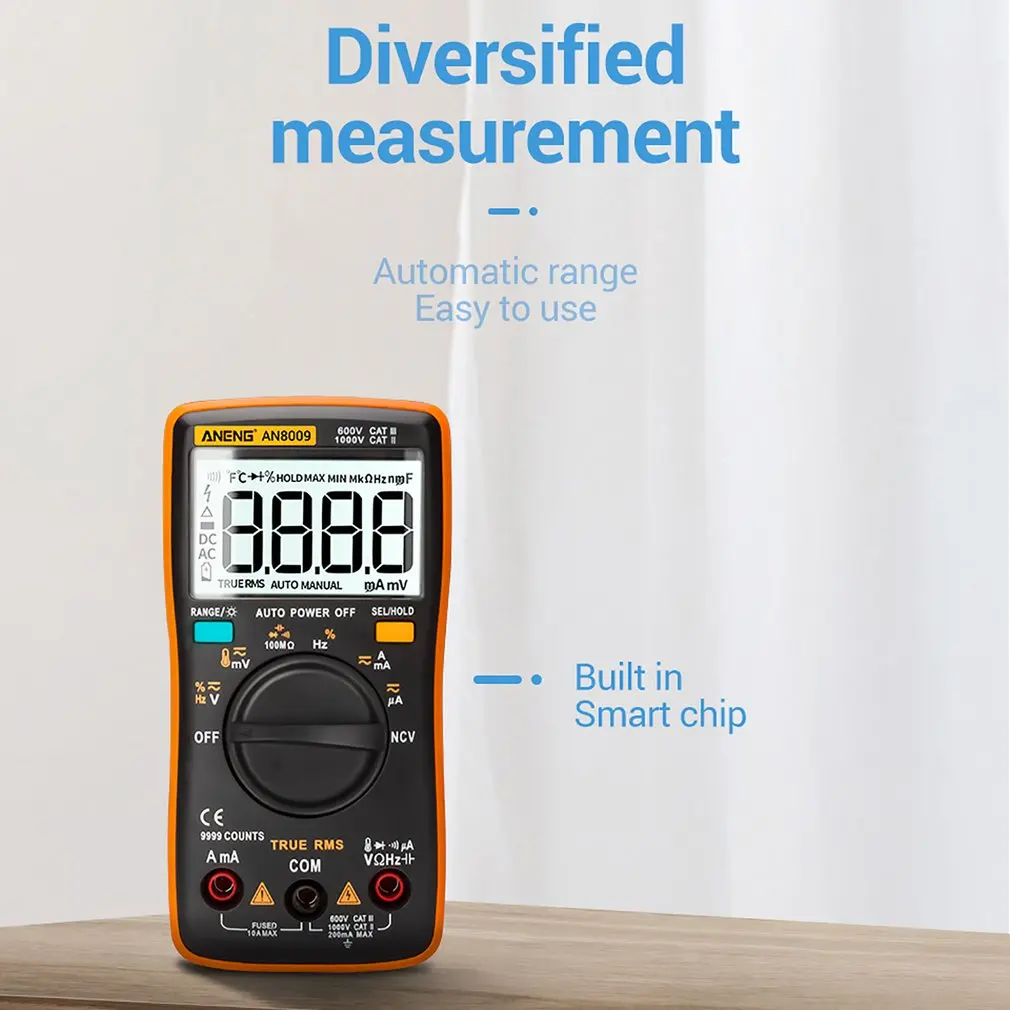2. Может использоваться для измерения напряжения переменного/постоянного тока, переменного/постоянного тока, сопротивления, емкости, диодов и непрерывности тестирования, температуры, частоты и т. Д.