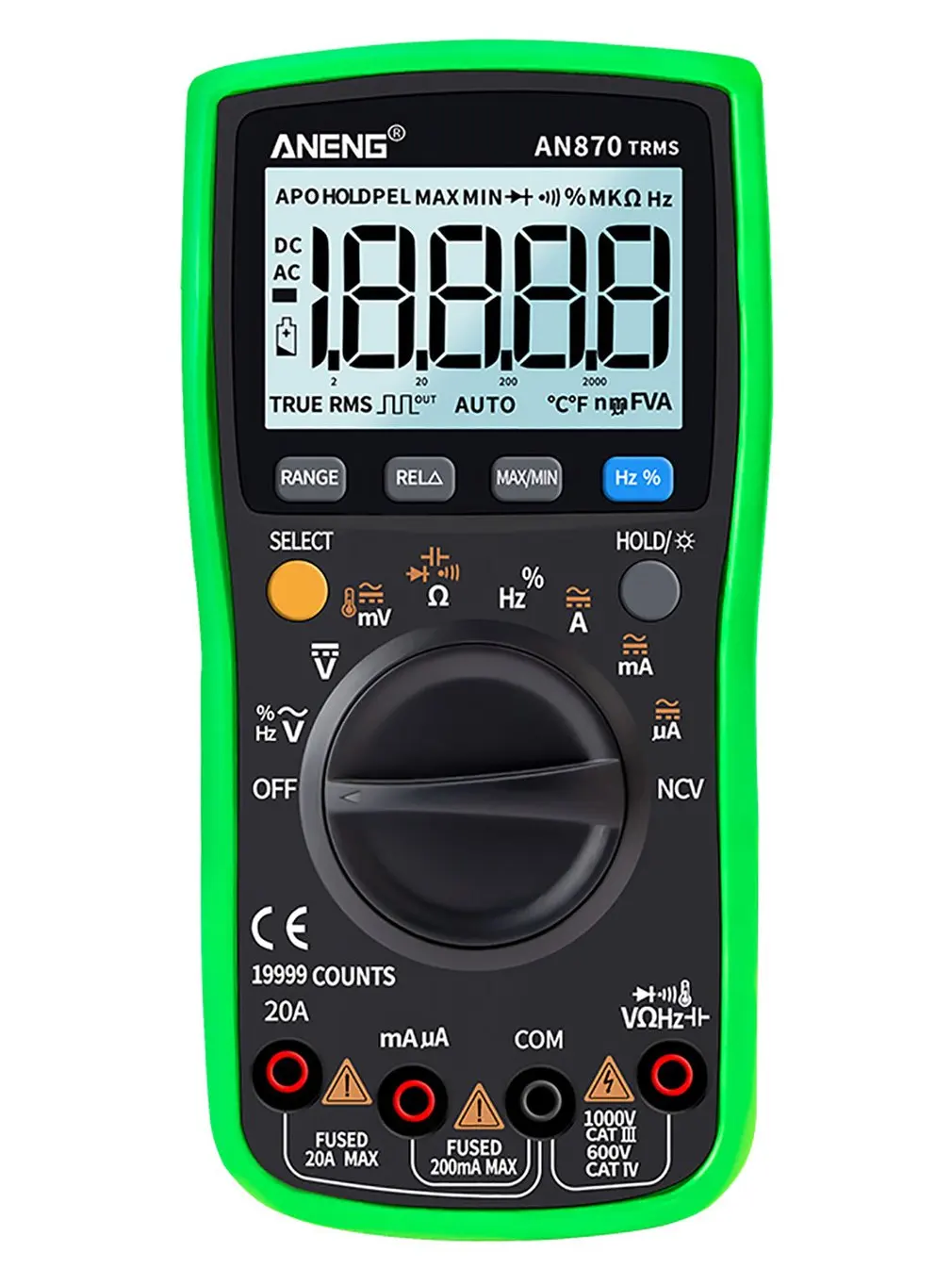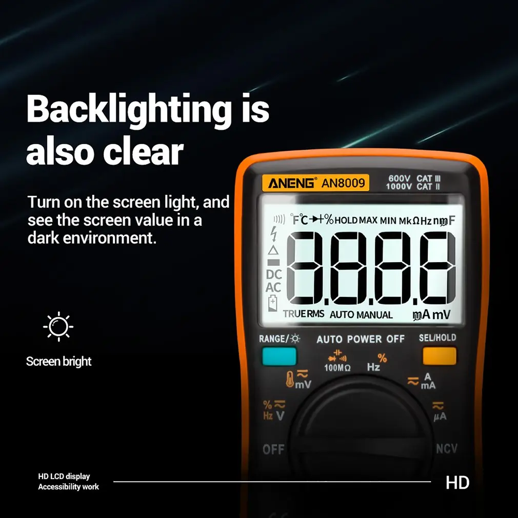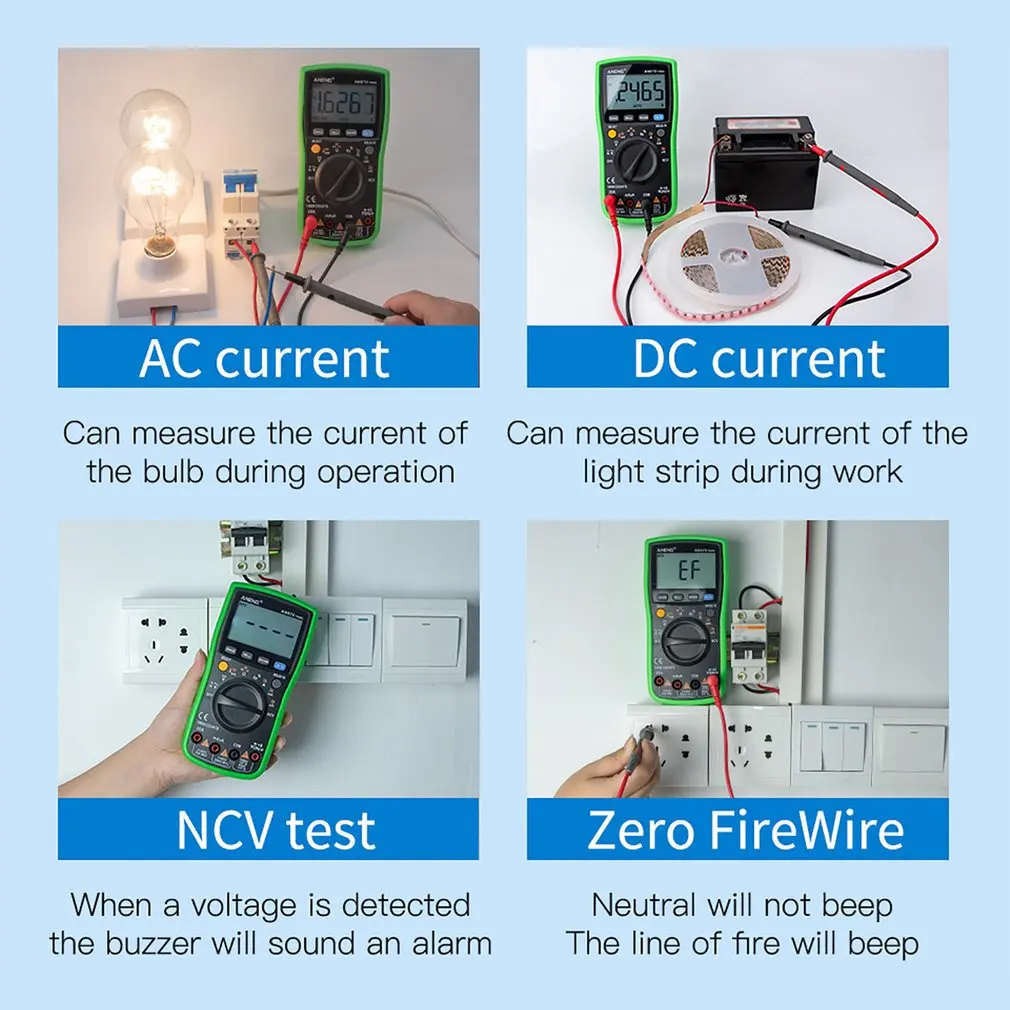 2. Может использоваться для измерения напряжения переменного/постоянного тока, переменного/постоянного тока, сопротивления, емкости, диодов и непрерывности тестирования, температуры, частоты и т. Д.
