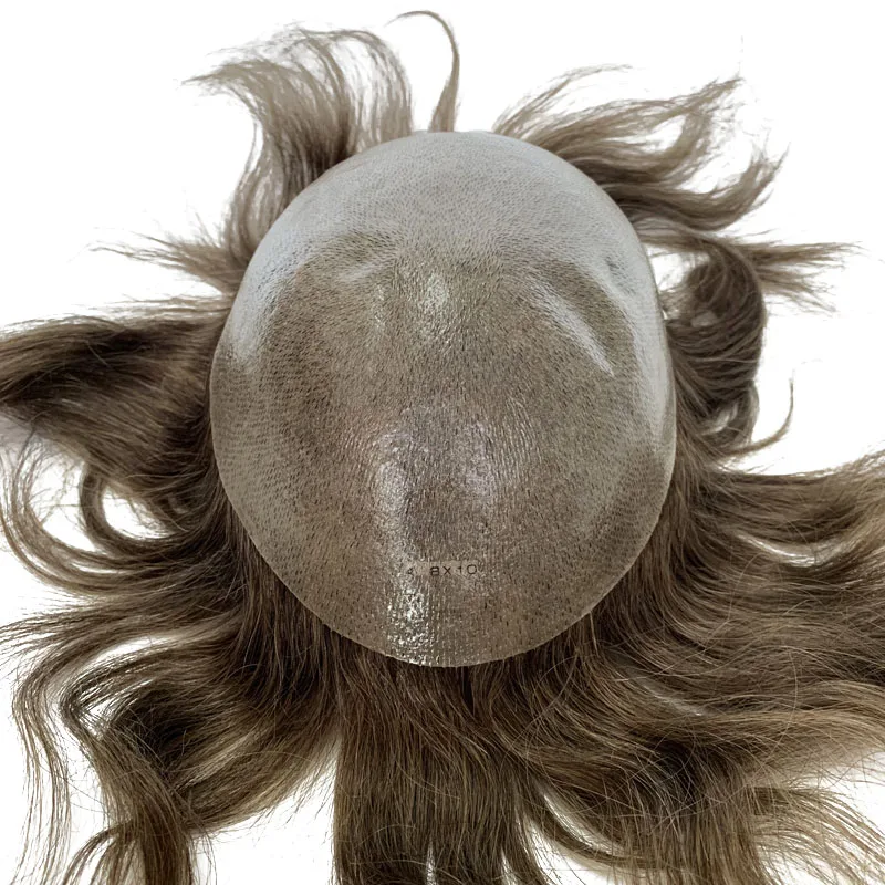 Инъекция полной кожи с естественной линией волос мужской парик волна 100%