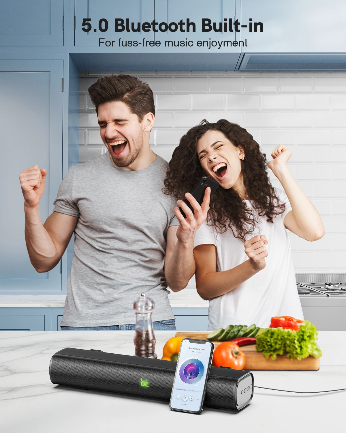 Bluetooth 5,0 обновленоВстроенный Bluetooth позволяет Беспроводная потоковая передача Аудио с мобильных устройств. Избавьтесь от кабелей, используйте пальцы из любой точки комнаты и слушайте музыку. Нет задержек в аудио/видео проблемах | Двухмощные динамикиС двумя 25 Вт Полнодиапазонный динамик ДрайверыИ 2 пассивных радиатораИ Интегрированная технология DSP . Улучшенный цифровой звук и уникальная акустическая структура обеспечивают акустический звук премиум-класса. | Тяжелый басВстроенный пассивный басовый радиатор Для Богаче ,Более мощный Бас. Улучшает общий уровень звука, особенно низкие частоты. 50 Гц |