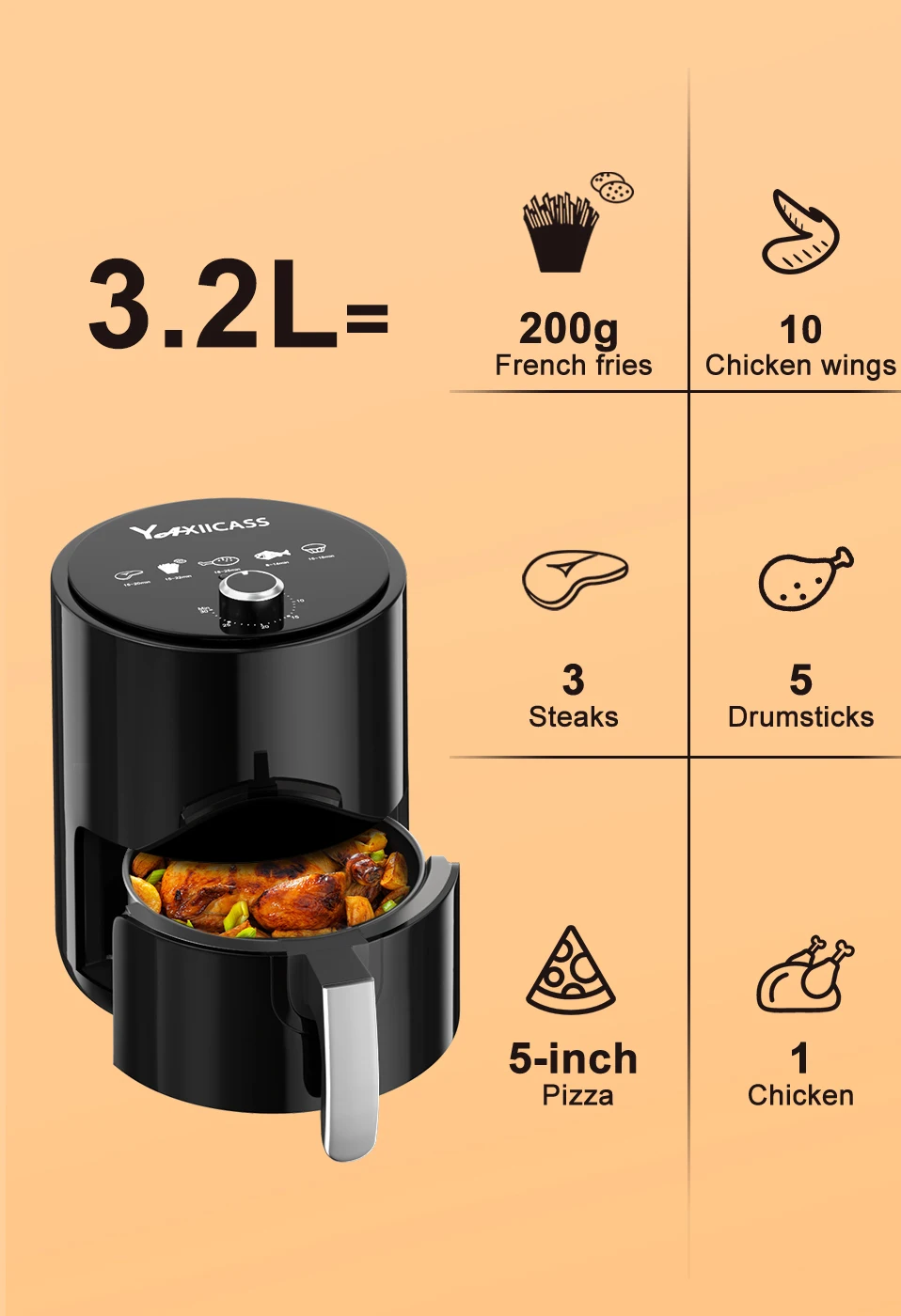 YAXIICASS 3.2L воздушная фритюрница большой емкости