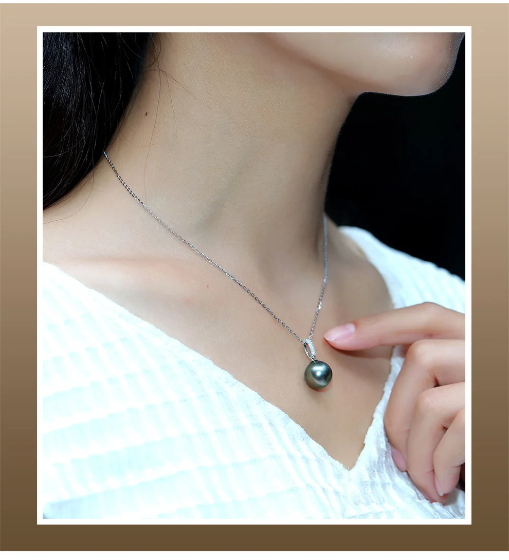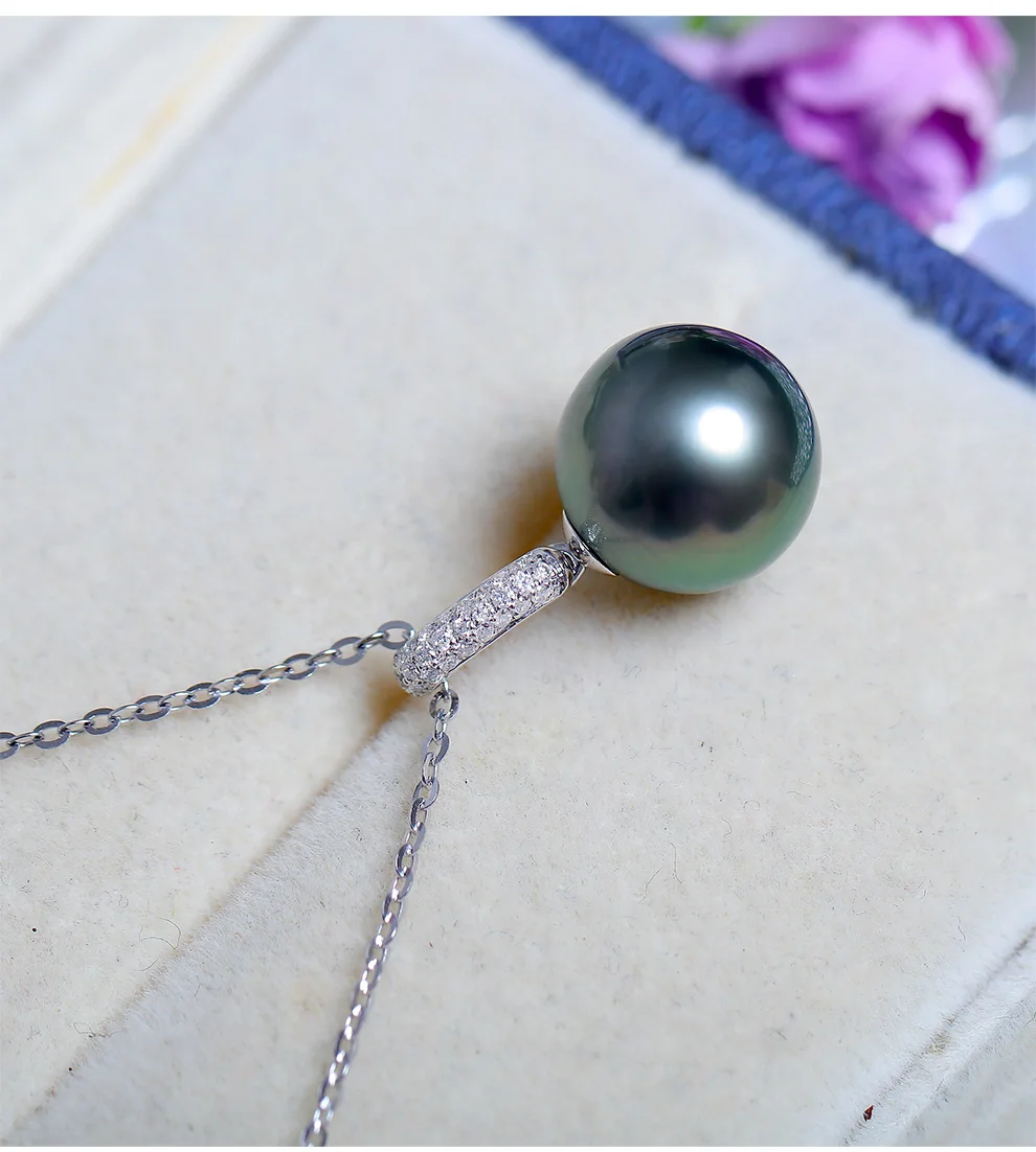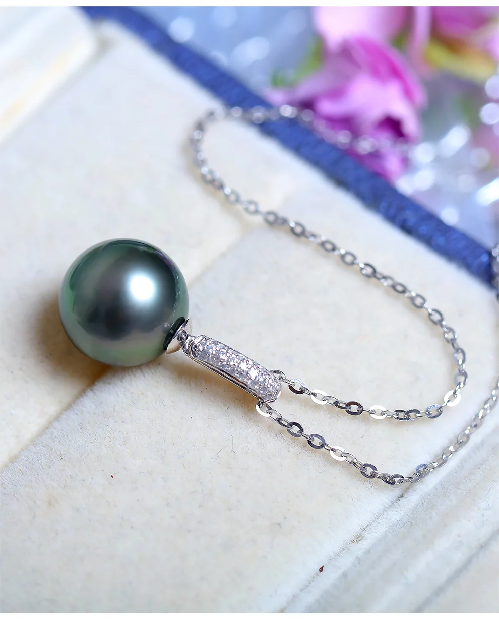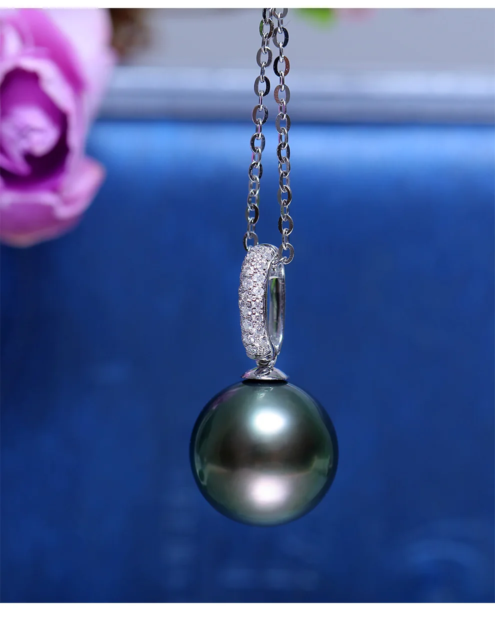 [YS] роскошный светильник, 18 К, белое золото, бриллиант, подвеска, Натуральный Черный таитянский жемчуг, Подвеска для женщин