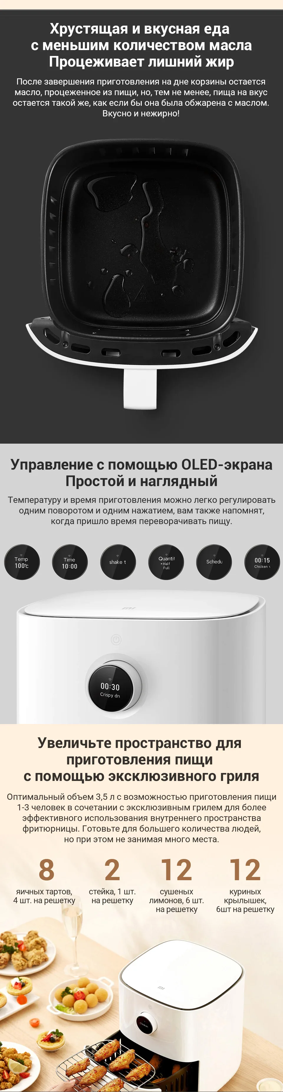 12L Стекло Смарт аэрофритюрница для приготовления блюд без бытовой Визуальный