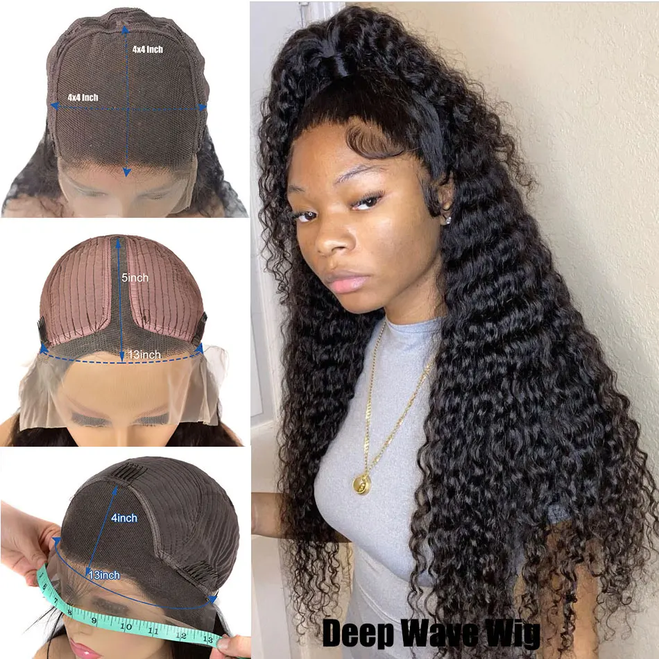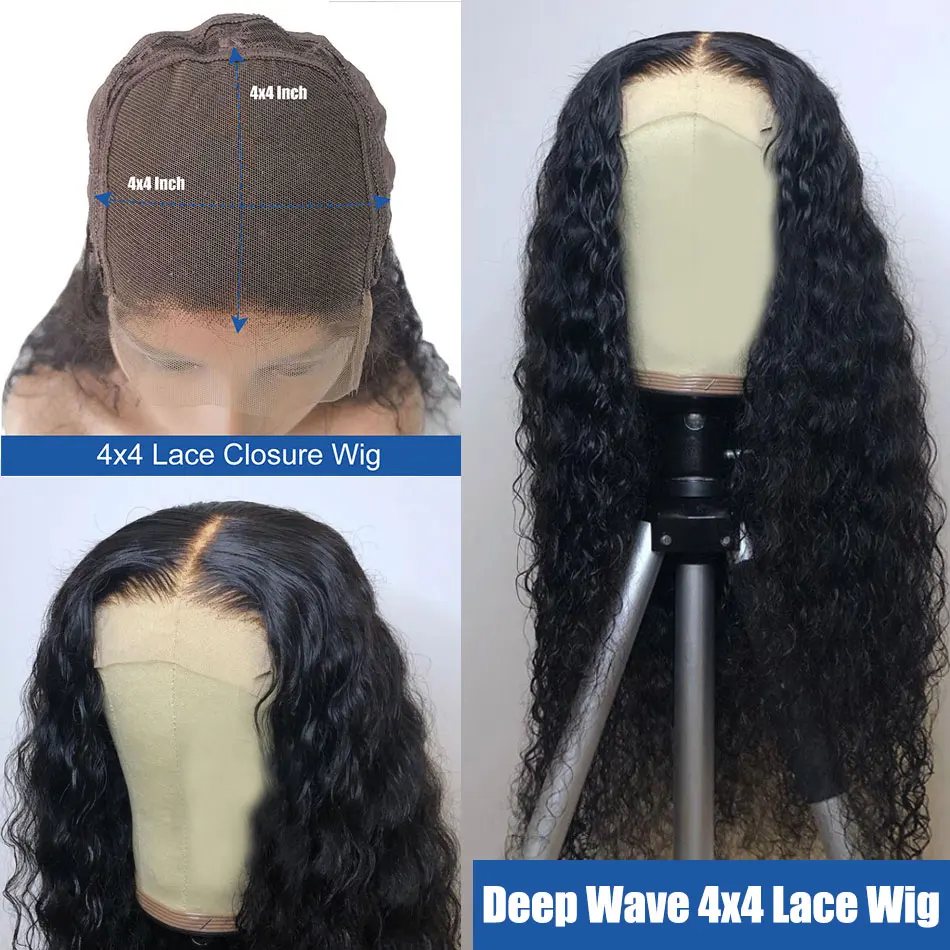Свободные глубокая волна человеческих волос парики 4x4 кружева Закрытие глубокая волна парики RECIFEYA распущенных волос глубокая волна человеческих волос парик шнурка