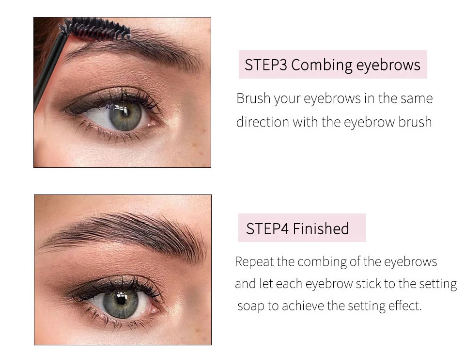 3. Повторите расчесывание бровей и позвольте каждому карандаш для бровей установить мыло для достижения эффекта настройки.