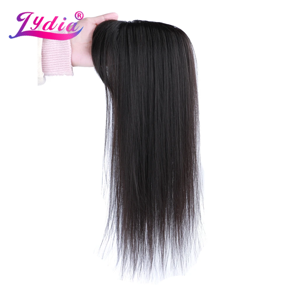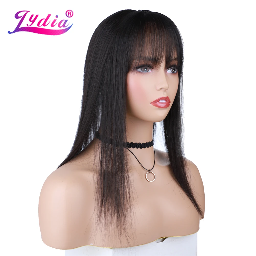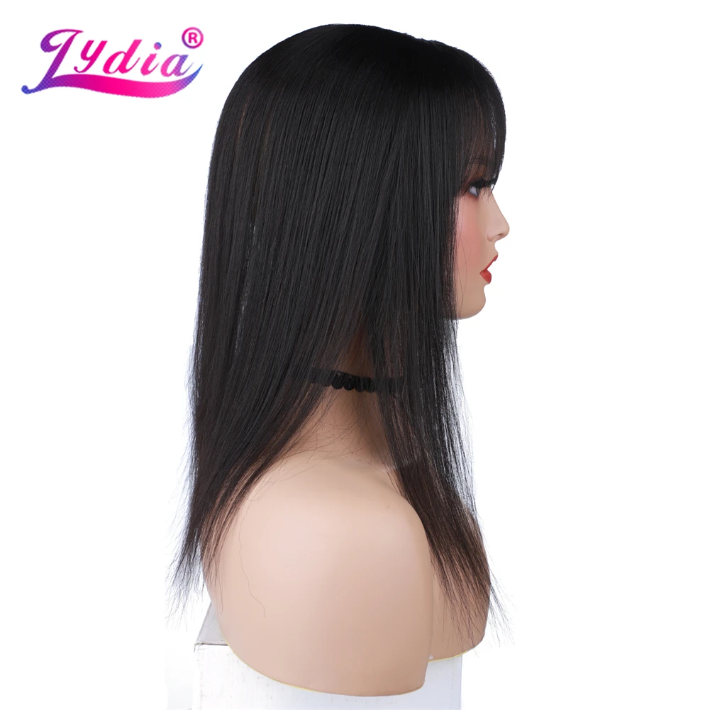 Lydia For Women Straight Synthetic Mixed Human Hair Extensions Toppers With Bangs Clips In Hairpiece Natural Black Hairline Wig 16Inch