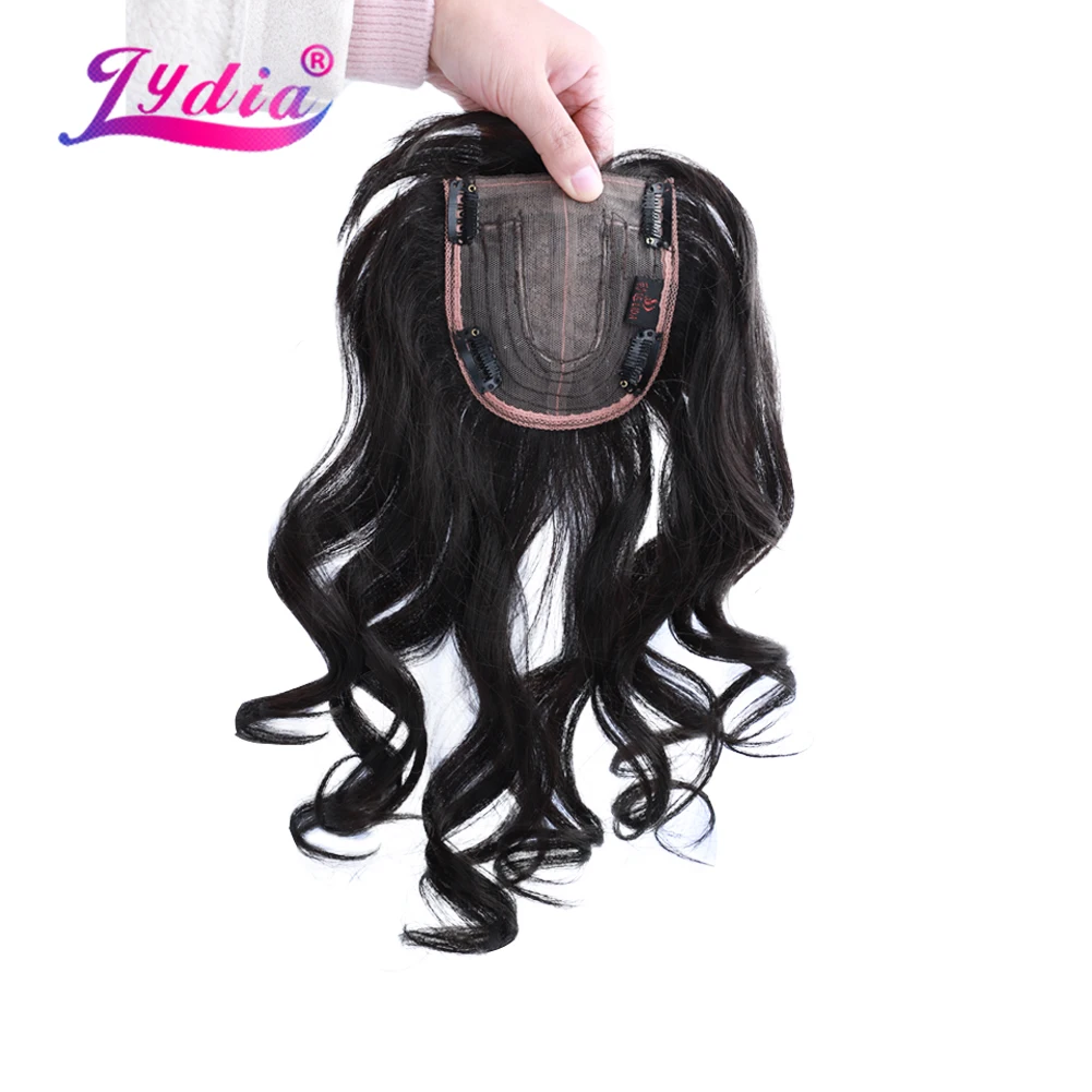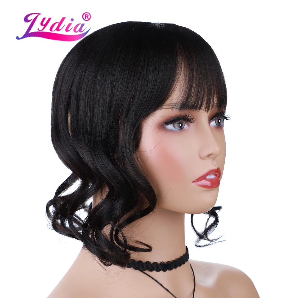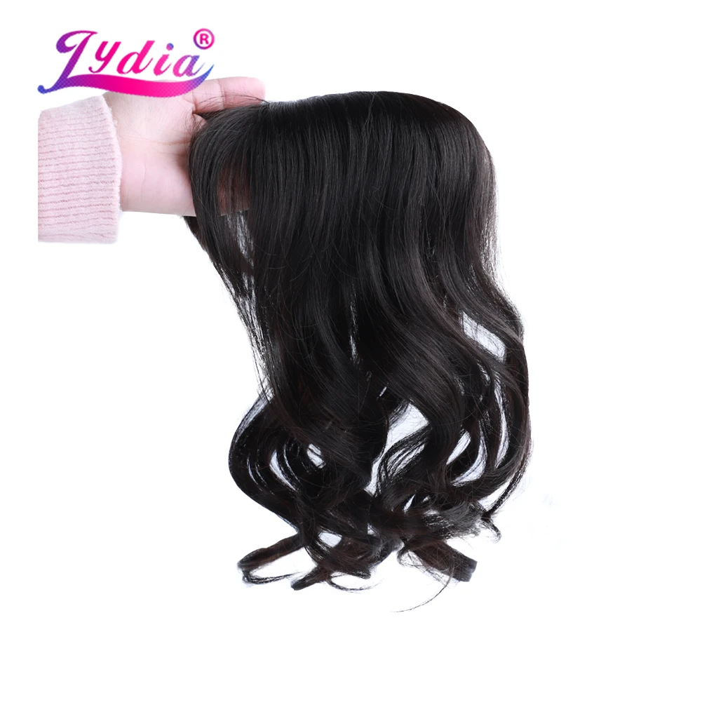 Lydia For Women Curly Synthetic Mixed Hair Extensions Toppers With Bangs Clips In Hairpiece Natural Black Hairline Wig 16Inch
