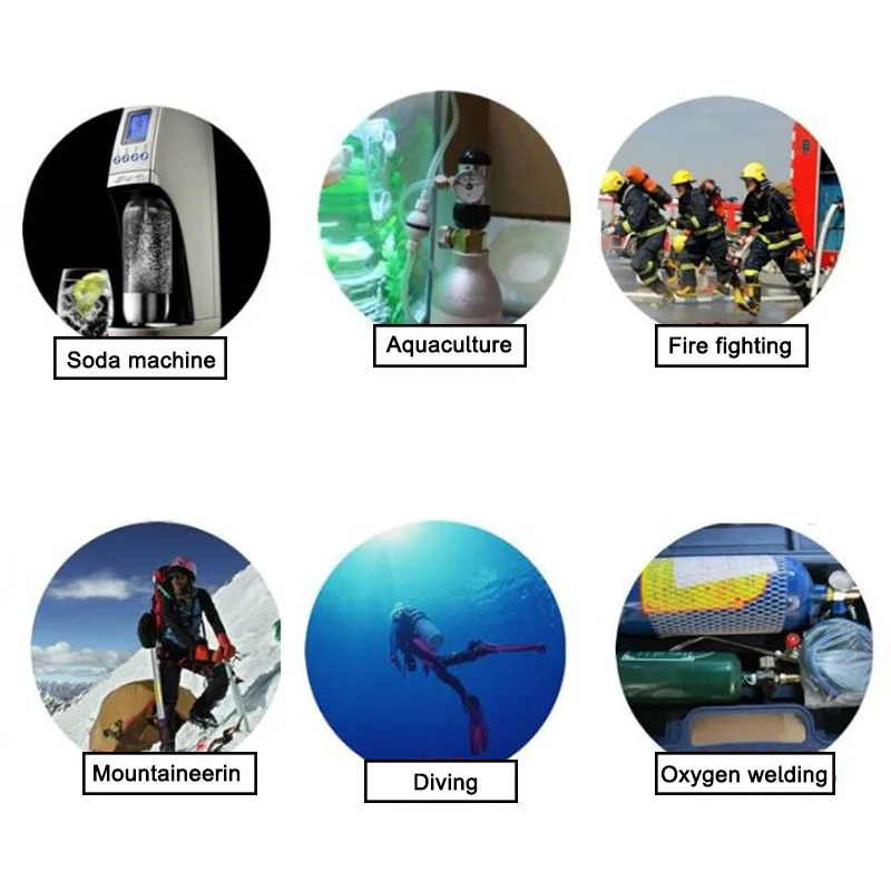 Применение: пожаротушения, химической промышленности, электрической сварки, дайвинга и т. Д.