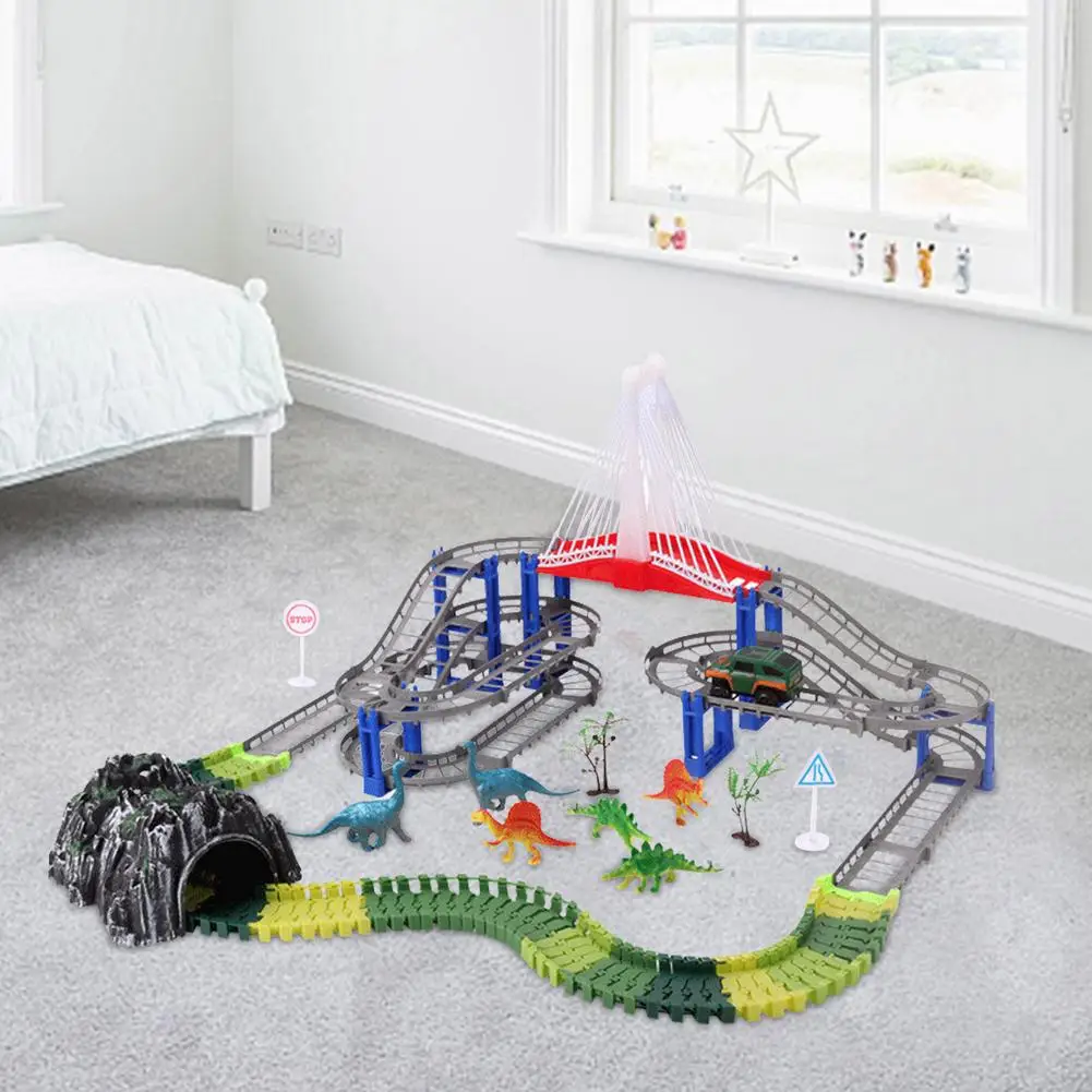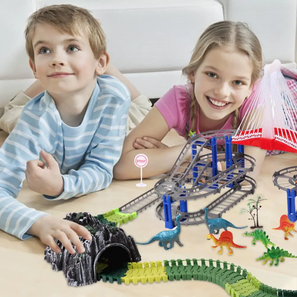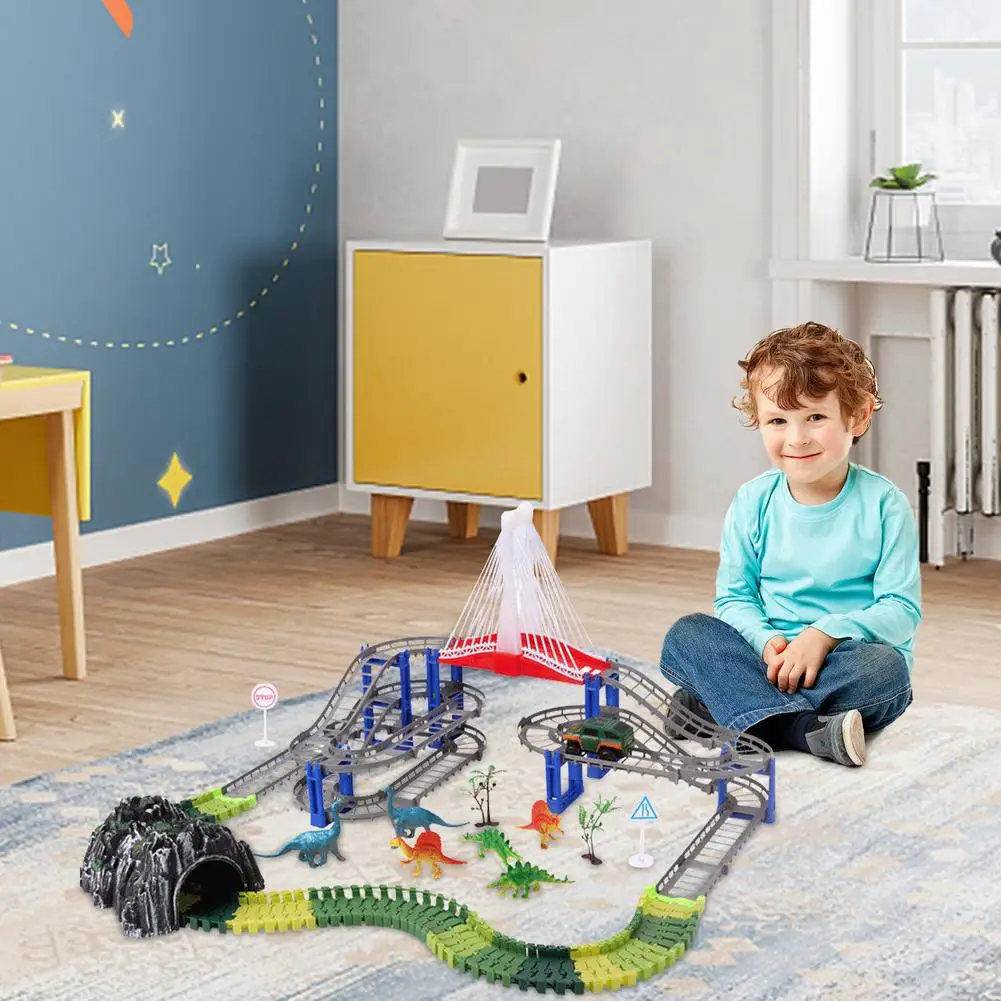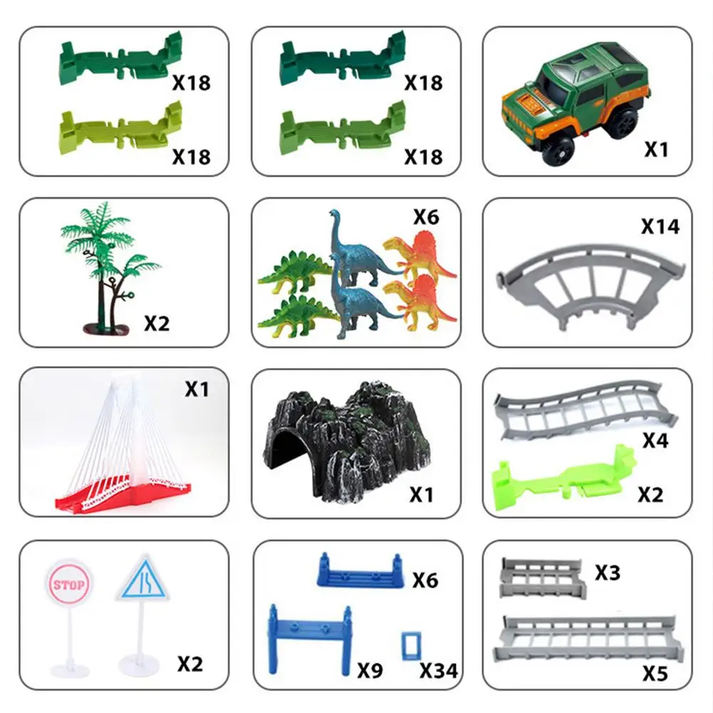 Есть 2 варианта входа 171 шт. и 167 шт. роскошная версия игрушечного трека динозавра. Изготовлено из высококачественного АБС-пластика, гибкий игровой набор имеет гладкие края, что удобно для малышей. Гибкий трек динозавра можно сгибать, скручивать, скручивать в различные формы. Дети могут улучшить координацию рук и глаз, подсчет, сортировку, пространственное мышление и творчество во время игры. Идеальный подарок на день рождения или Рождество для мальчиков и девочек 3 лет!