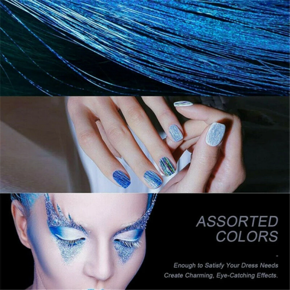 Применение: сделать вас крутыми и модными, сверкающими и блестящими прядями Блестки для волос хорошо подходит для ежедневной красоты волос, дня рождения, тематической вечеринки, выделиться своей красотой, сделать вас выдающимся в толпе