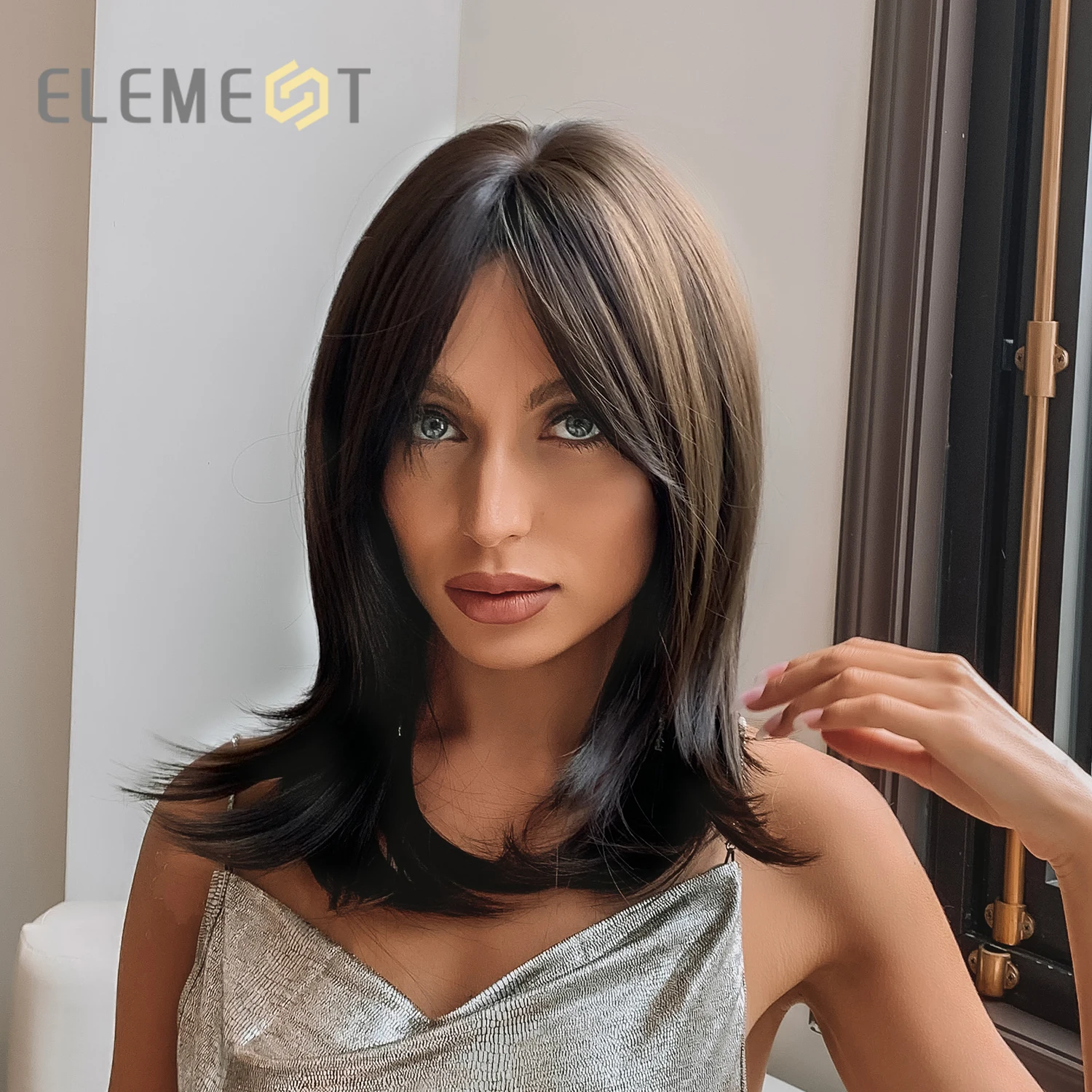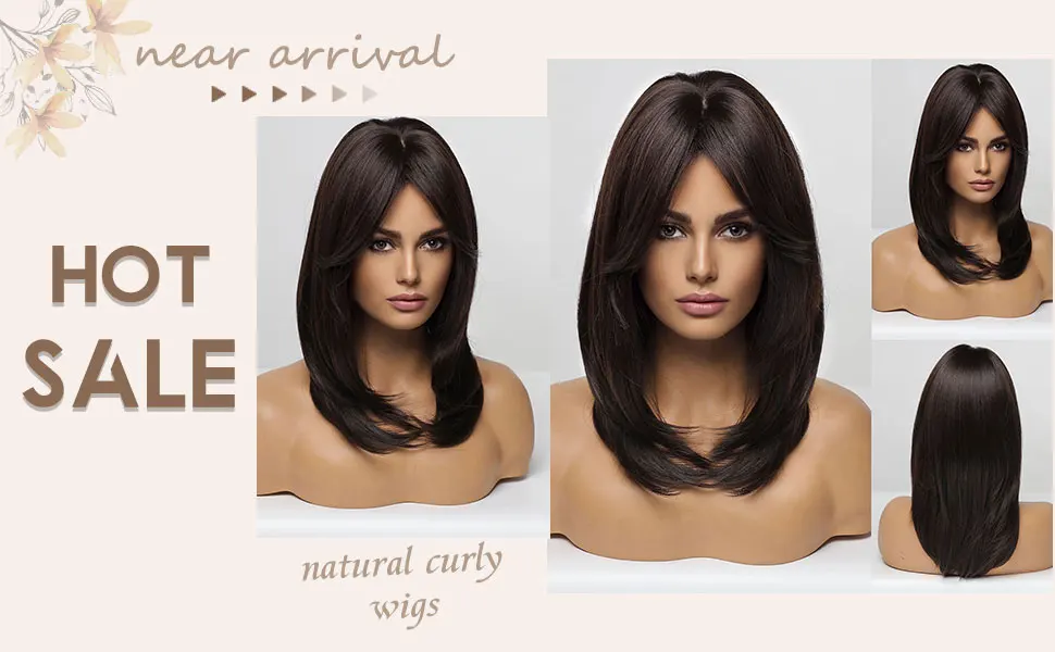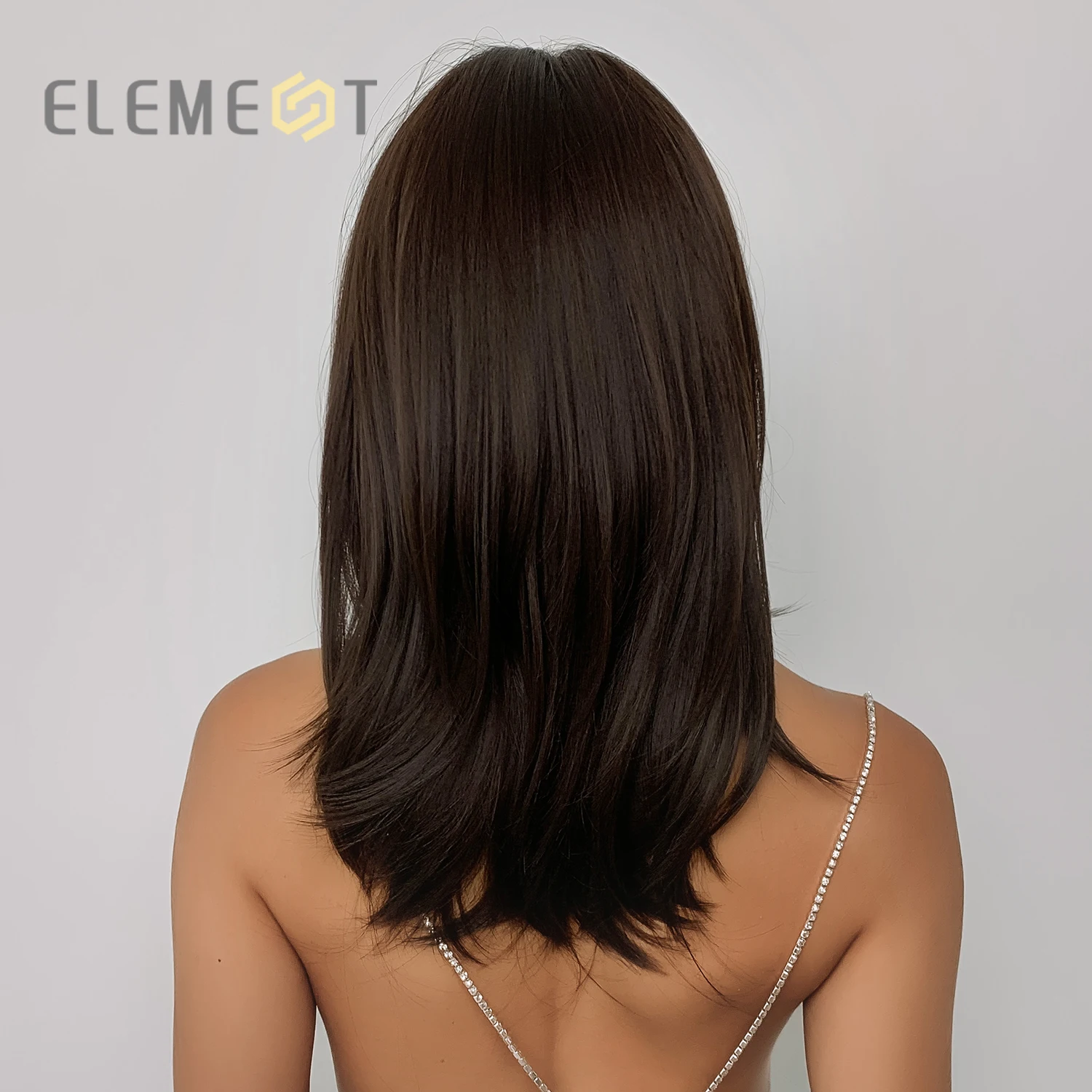 Парики из синтетического волокна средние темно-коричневые прямые парики для женщин с челкой волнистые длинные волосы боб натуральные повседневные термостойкие