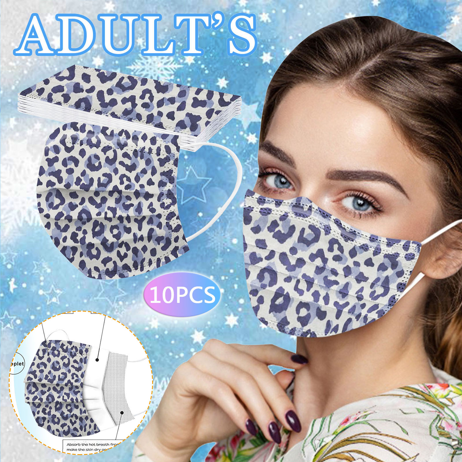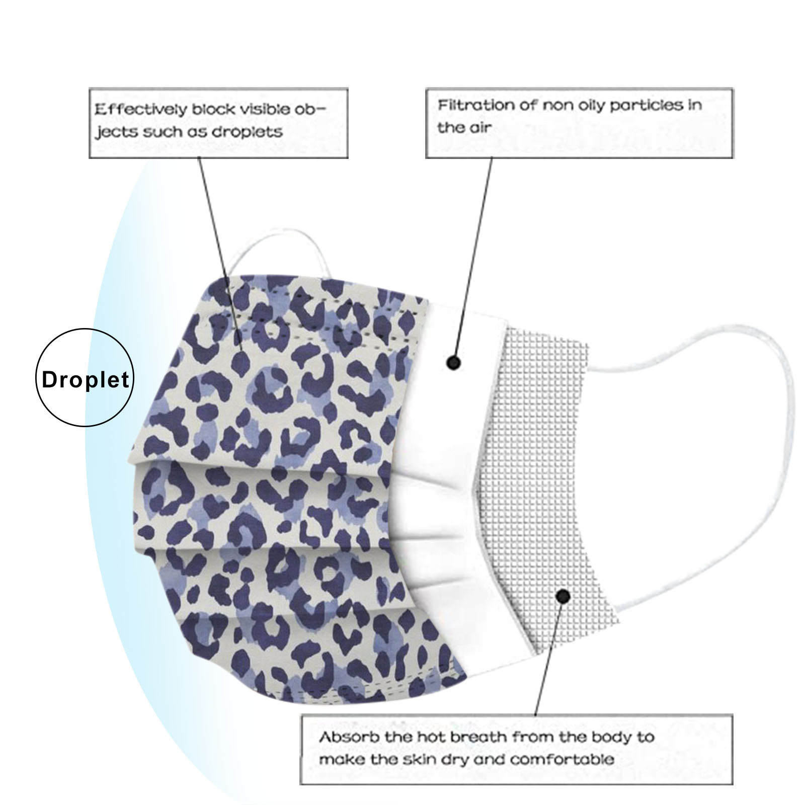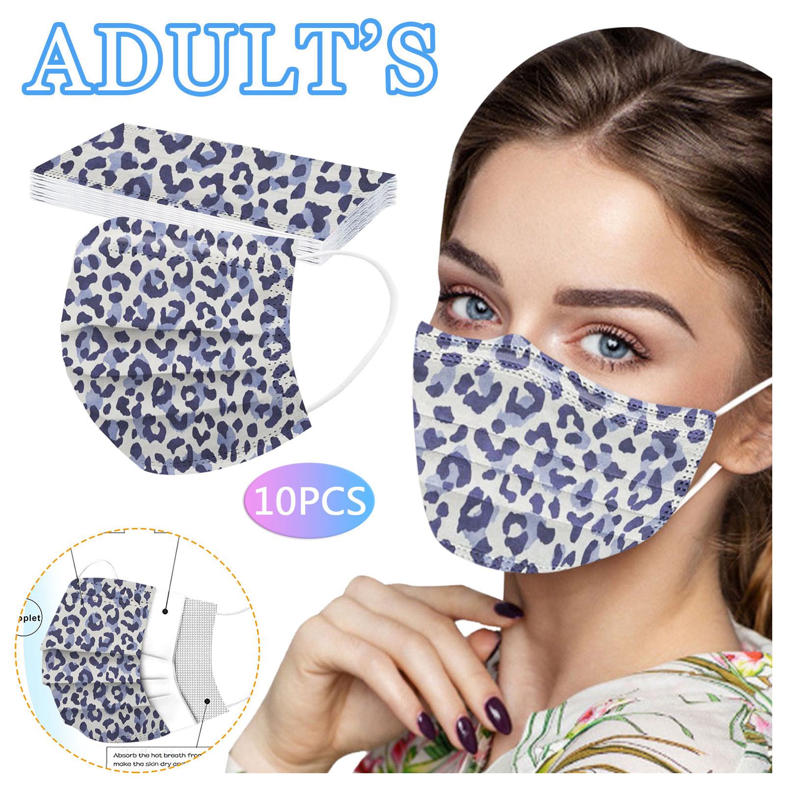В 3 слоя Нетканая одноразовая маска изготовлена из 3 слоев нетканого материала, Безопасен и безопасен для использования. Дышащий материал и милый Узоры, которые делают его полезным и модным. Специальный 3 слоя из нетканого материала Дизайн, обеспечивает некоторую защиту от пыли, автомобильных выхлопных газов, Пыльца и т. д. эластичная Ушная петля, легко носить и не давит на уши. Маникюрный салон или любые другие области, где может потребоваться защита