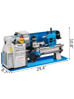 Мини-кровать токарного станка изготовлена из высококлассного железа. Оснащенный нейлоновыми зубчатыми передачами, этот токарный станок является износостойким, прочным, более точным вращением и профессиональным. Мини-металлический токарный станок Мощность двигателя: 550 Вт. Полноразмерная защита от брызг обеспечивает максимальную защиту.