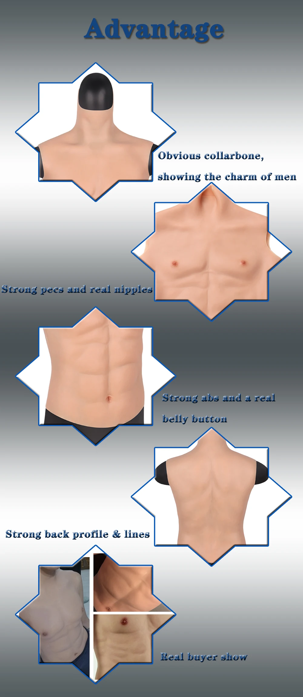 Реалистичный силиконовый искусственная грудь мужской костюм мужской искусственный симулятор мышц Косплей Костюм с изображением мышц силиконовый ложный abs