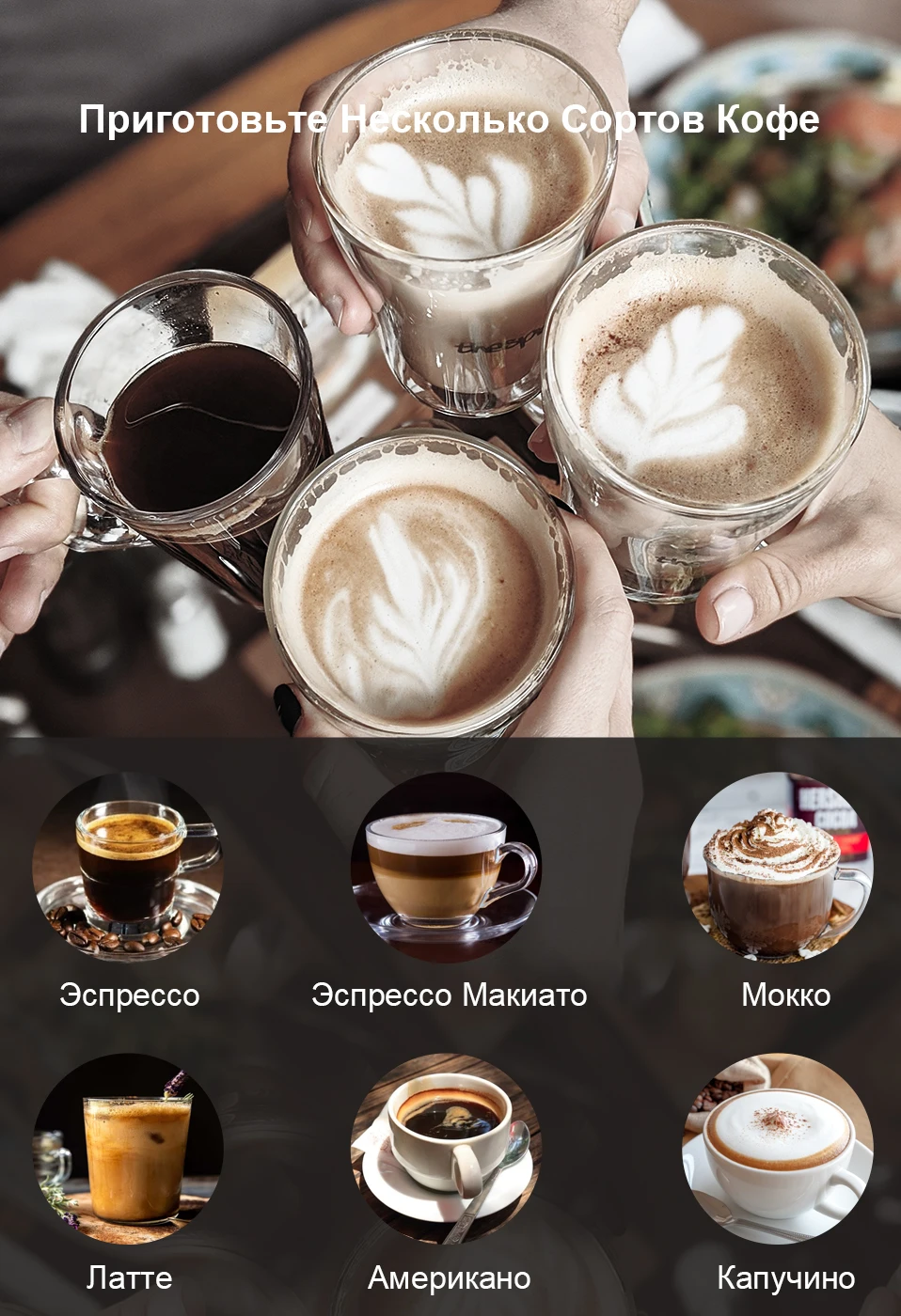 Итальянская кофемашина позволяет вам попробовать такие кофе, как эспрессо, эспрессо, маккьято, мокко, латте, американо и капучино в домашних условиях.