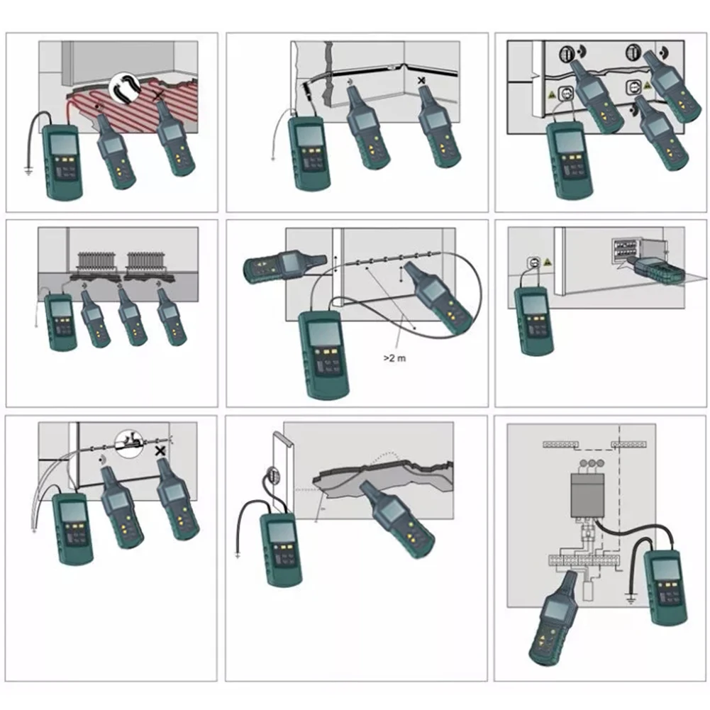 MS6818 Профессиональный ЖК-кабель тестер провода трекер металла трубы локатор детектор линия Трейсер с поиском проверки напряжения 12-400 В диагностические инструментыХарактеристика: Обнаружение путей прокладки кабелей, электрических линий, водопроводных и газовых трубопроводов, погребенных в стенах и под землей; Обнаружение неисправностей открытого и короткого замыкания в кабелях и электрических цепях, погребенных в стенах и под землей; Найдите предохранитель и его предохранитель; Ищите крытые розетки и распределительные коробки; Найдите разомкнутую цепь и неисправности короткого замыкания в электрической нагревательной линии под полом; Передатчик имеет встроенную функцию вольтметра переменного и постоянного тока, которая может линейно измерять напряжение переменного и постоянного тока 12 ~ 400 В: напряжение переменного тока: 12 ~ 400 В (50 ~ 60 Гц) ± 2.5%, напряжение постоянного тока: 12 ~ 400 В ± 2.5% Экран дисплея передатчика может отображать заданный уровень мощности передачи, код передачи, собственный уровень заряда батареи, измеренное значение внешнего напряжения, независимо от того, является ли измеренное внешнее напряжение переменным или постоянным током, И внешний высоковольтный предупреждающий символ вспышки; Передатчик имеет функцию самопроверки, которая может обнаруживать свой собственный статус излучения и отображать его на ЖК-экране для эффективной справки для пользователей; Экран дисплея приемника может отображать уровень мощности передатчика, передаваемый код, уровень заряда батареи передатчика и его собственный уровень заряда батареи, обнаруженный индукционный сигнал переменного напряжения и предупреждающий символ вспышки; Чувствительность приемника может регулироваться автоматически или вручную; Приемник имеет функцию автоматической развертки частоты; И приемник, и передатчик имеют функцию отключения звука; Функция автоматического отключения приемника (более 10 минут без ключа, он автоматически отключит питание); В ЖК-дисплей экран приемника имеет заднюю панель светильник функция, что удобно для использования при плохом светильник применения; Приемник и передатчик оснащены функцией фонарика для обнаружения кабелей в темноте; Дополнительные передатчики могут быть предоставлены для расширения или различия нескольких сигналов; Конструкция компактная, прочная и легко переносится. Другие функции: Функция вольтметра передатчика: Да Фонарик: Да Подсветка: Да Дисплей температуры окружающей среды: Да Бесшумный: Да Автоматическое выключение: Да Характеристики передатчика: Выходной сигнал: 125 кГц Диапазон идентификации внешнего напряжения: 12-400 В постоянного тока ± 2.5%; AC12 ~ 400 В (50 ~ 60 Гц) ± 2.5% Температура измерения технический индекс: ± 2,5 ℃ Дисплей: ЖК-дисплей, с функциональным дисплеем и гистограммой Диэлектрическая сила внешнего напряжения: максимум 400 В переменного тока/постоянного тока Категория перенапряжения: CATIII300V Степень загрязнения: 2 Источник питания: 1x9 В, IEC 6LR61 (не входит в комплект) Потребляемая мощность: Минимальный ток около 31 мА; Максимальный ток около 115 мА Предохранитель: F0.5A1000V, 6.3x32mm Диапазон температур: Работа: от-10 ℃ до 50 ℃, максимальная относительная влажность 80% (без конденсации) Хранение: от-20 ℃ до + 60 ℃, максимальная относительная влажность 80% (без конденсации) Высота: до 2000 м Размеры (вы