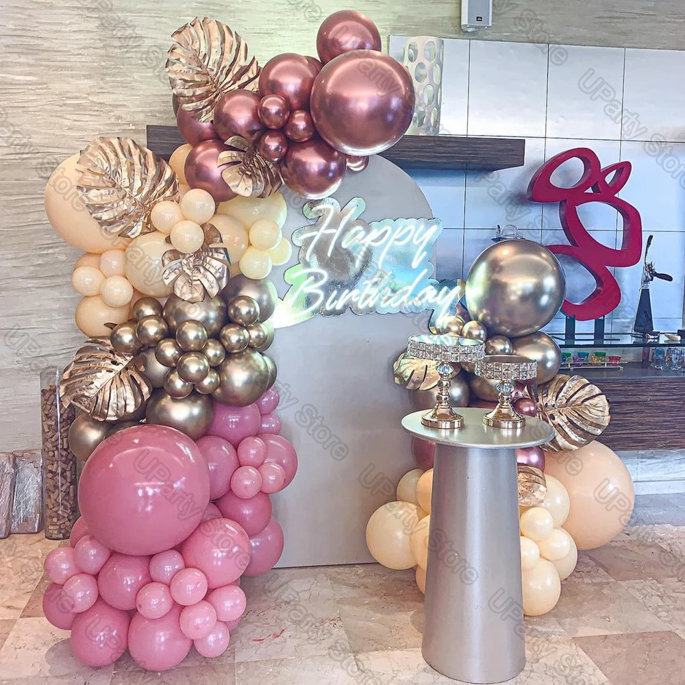 139 шт Металлические розовые шары Арка хром Золотые листья песок белый шар гирлянда для дня рождения День Святого Валентина вечерние украшения