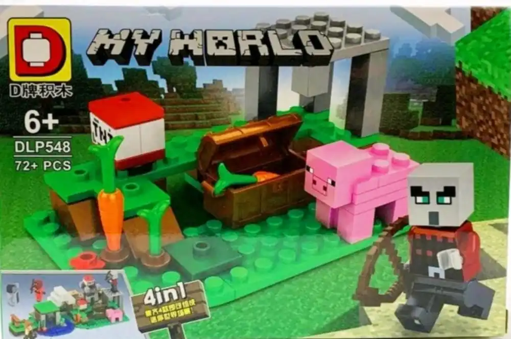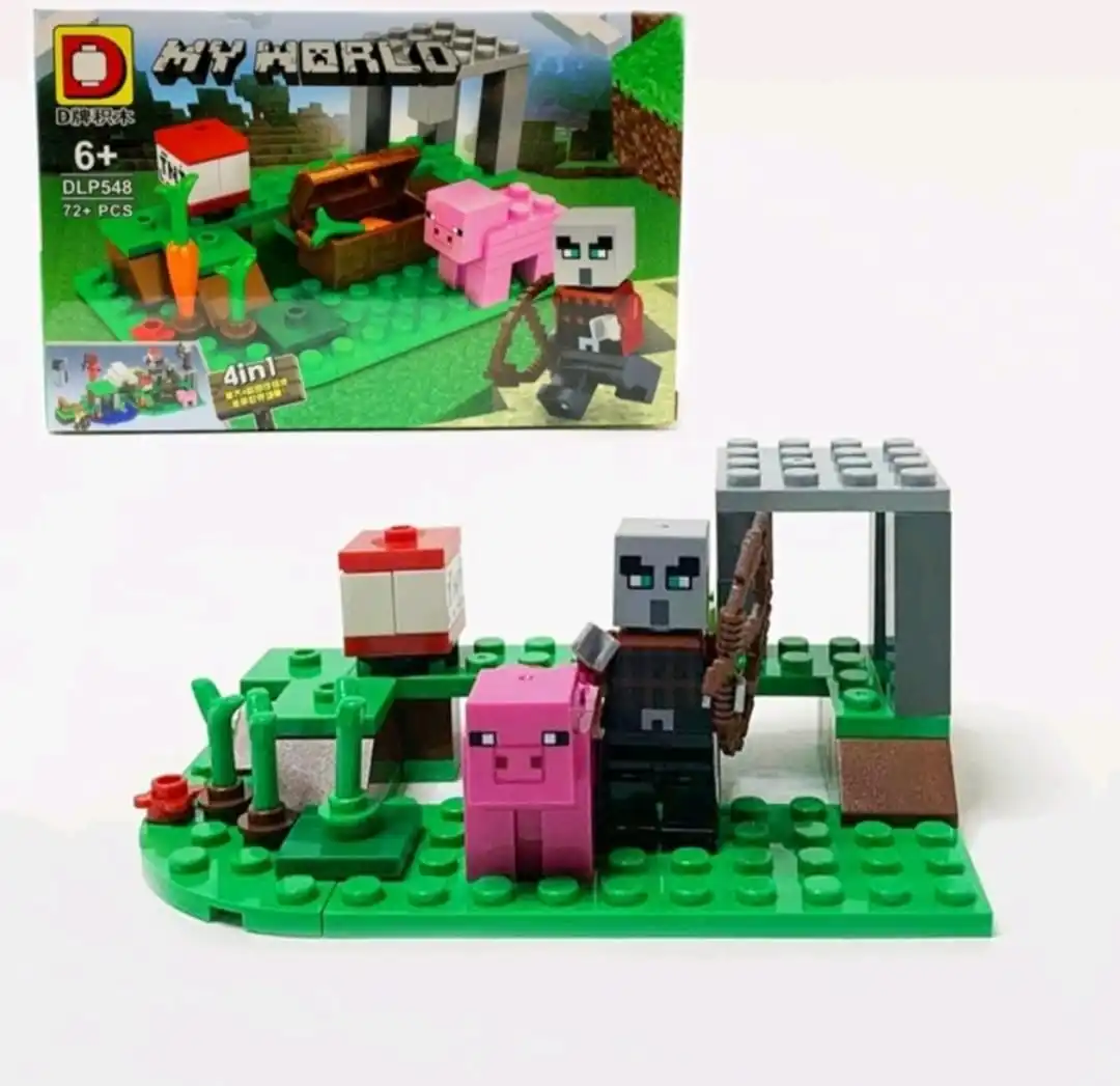 Набор китайского лего из 88+ деталей, есть запасные. Детали принадлежат к разделу " Майнкрафт" , в комплект входит: свинка, разбойник со стрелой, мелкие детали, морковка, ТНТ.