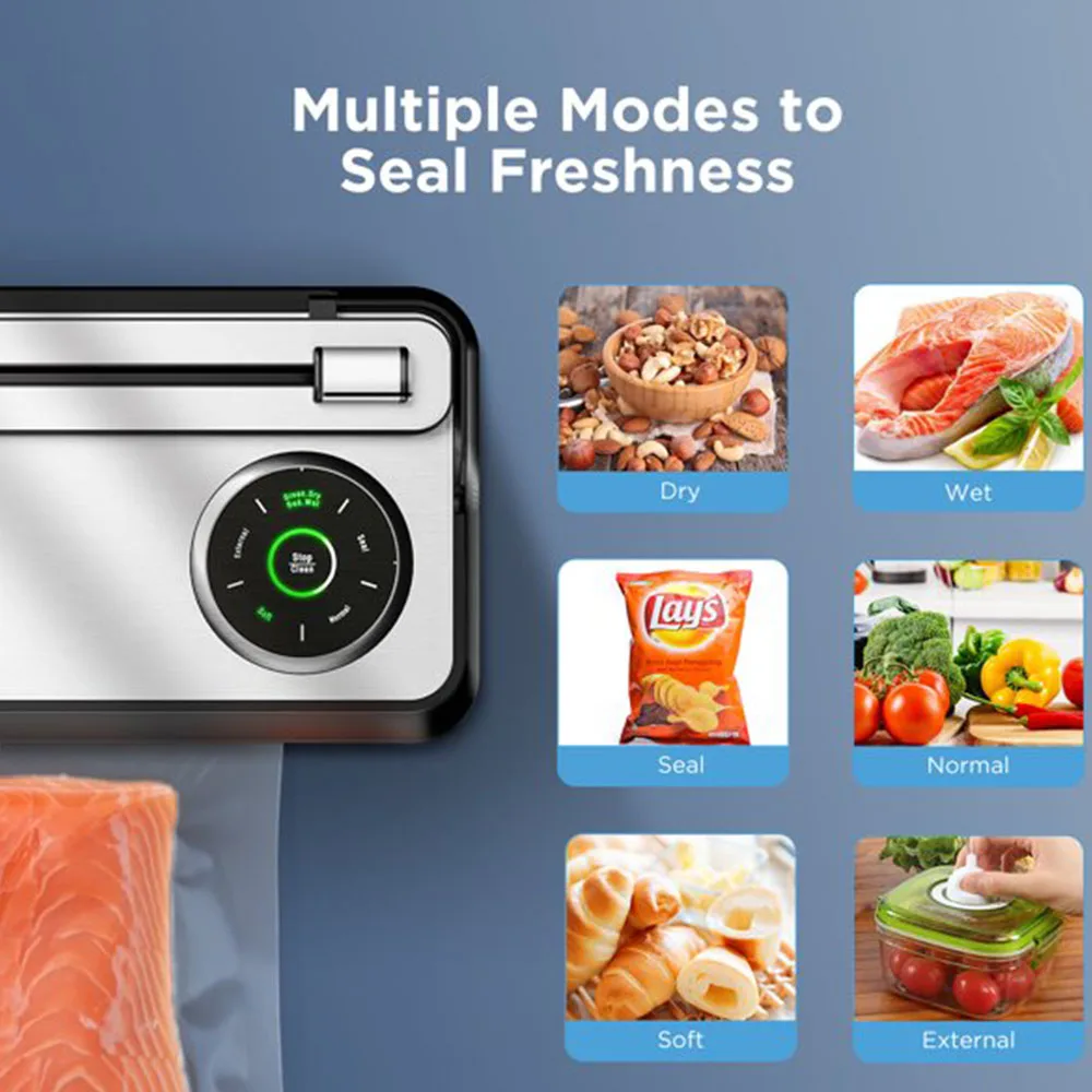 С 4 режимами вакуумной герметизации для идеального сохранения пищи на основе типа вашей пищи, идеально подходит для мяса, ловли игры или рыбы, урожая культур, сыпучих продуктов, И сухие товары для кладовки и морозильной камеры, также идеально подходят для приготовления пищи sous vide.