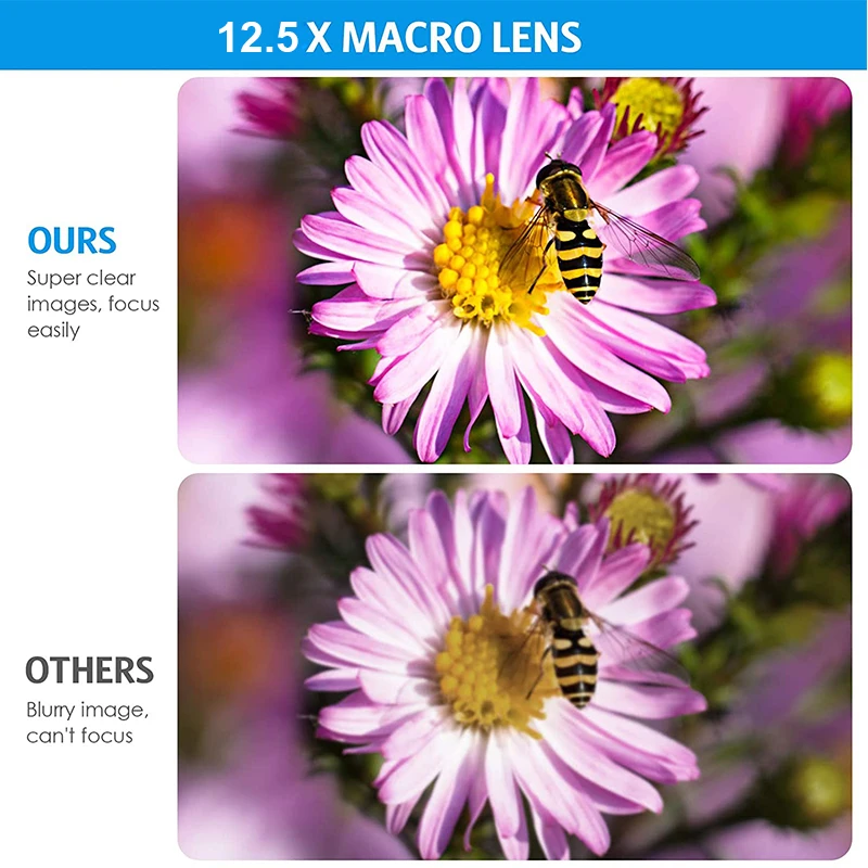 Объектив имеет высококачественное Оптическое стекло + Многослойное оптическое покрытие, которое эффективно устраняет дефекты четких средних и размытых краев при съемке фотографий с внешними линзами на мобильный телефон.