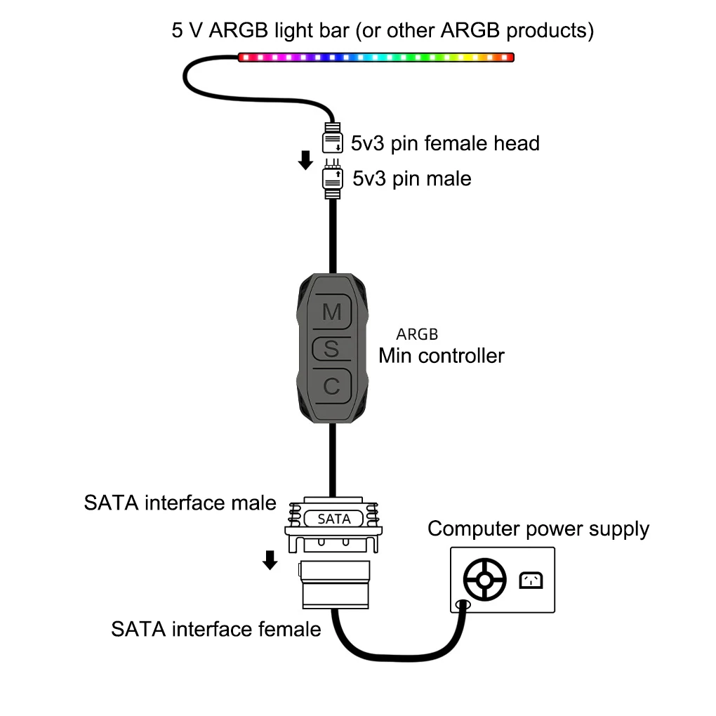 Подходит для: Этот контроллер вентилятора охлаждения компьютера подходит для материнской платы, которая не поддерживает синхронизацию 5 в ARGB.