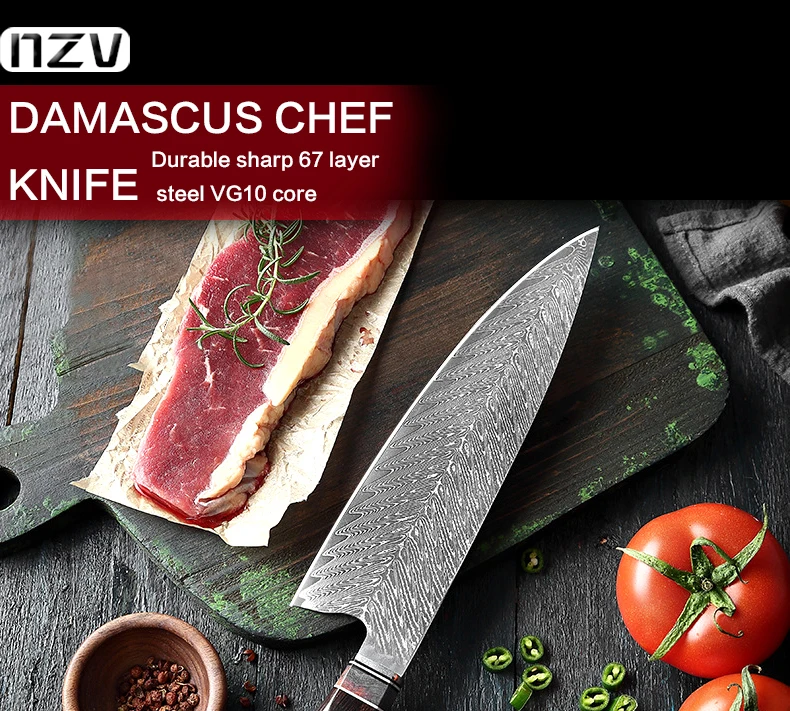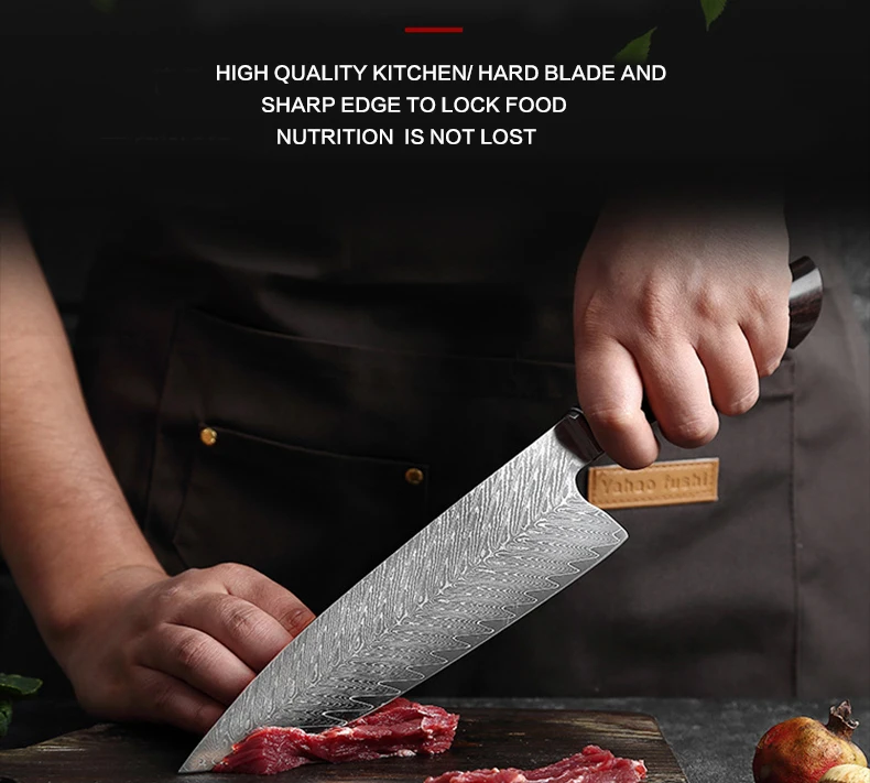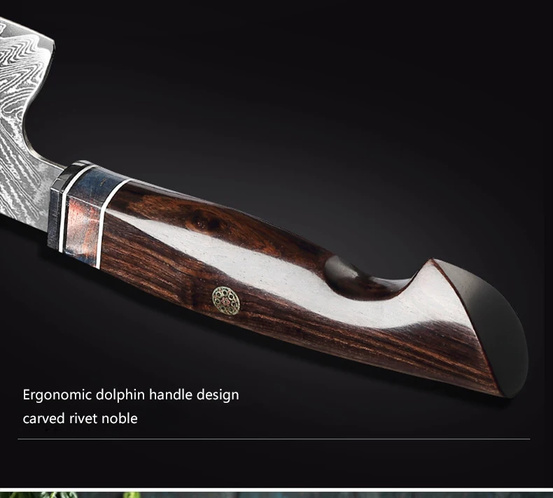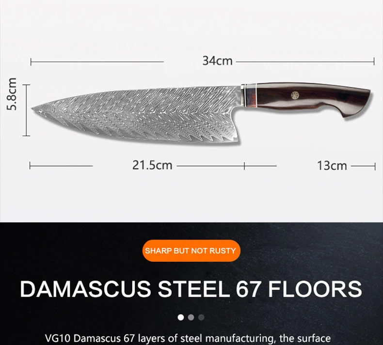 67 слоев дамасской стали с стальным сердечником VG10, после вакуумной термической обработки, стальное ядро стабильности, острый прочный, без ржавчины производительности, высокое качество кухни, нужен настоящий кухонный нож из дамасской стали