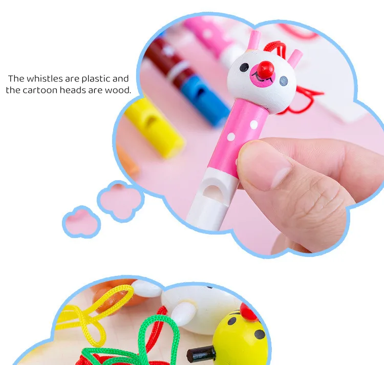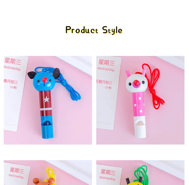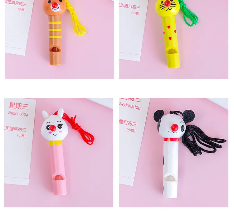 5Pcs Cartoon Wood Whistle Treat Kids Birthday Party Favors Guest Gift Lanyard Noise Maker Plastic Speaker Funny Prop Pinata Fill
