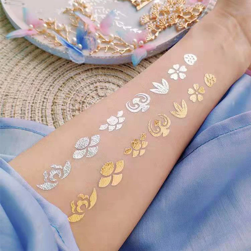 10Pcs Gold Temporary Tattoo Sticker Waterproof Bronzing Stickers Butterfly Letter Body Art Arm Fake Tatoo Wedding Party Supplies