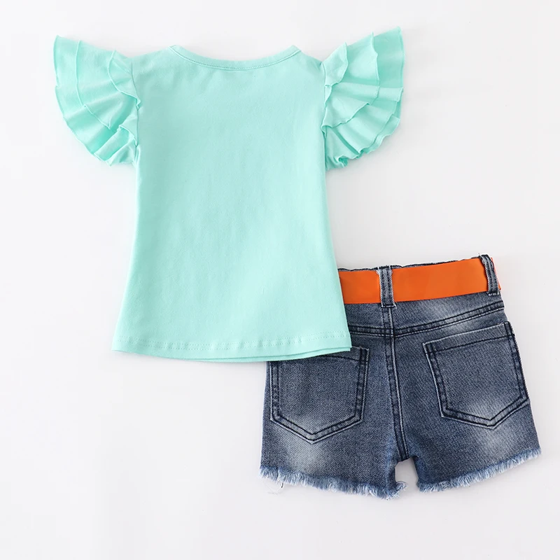 Детский джинсовый комбинезон комплект из 2 предметов белая рубашка с кружевным