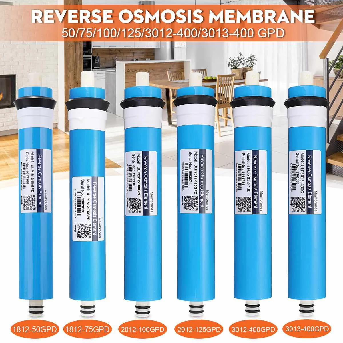 -Пять спецификаций для выбора: 50GPD,75GPD,100GPD,125GPD,400GPD.