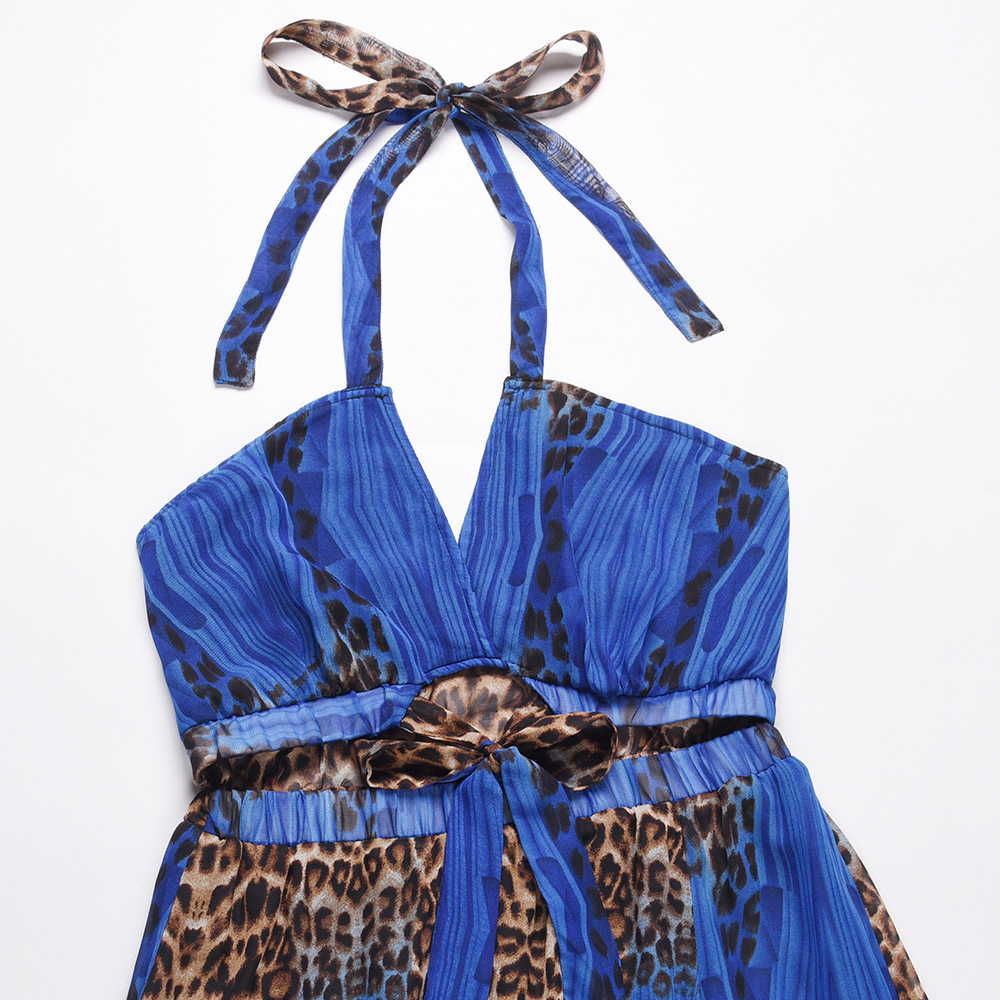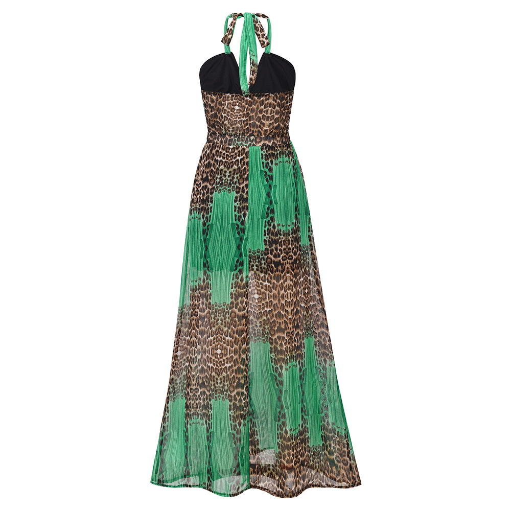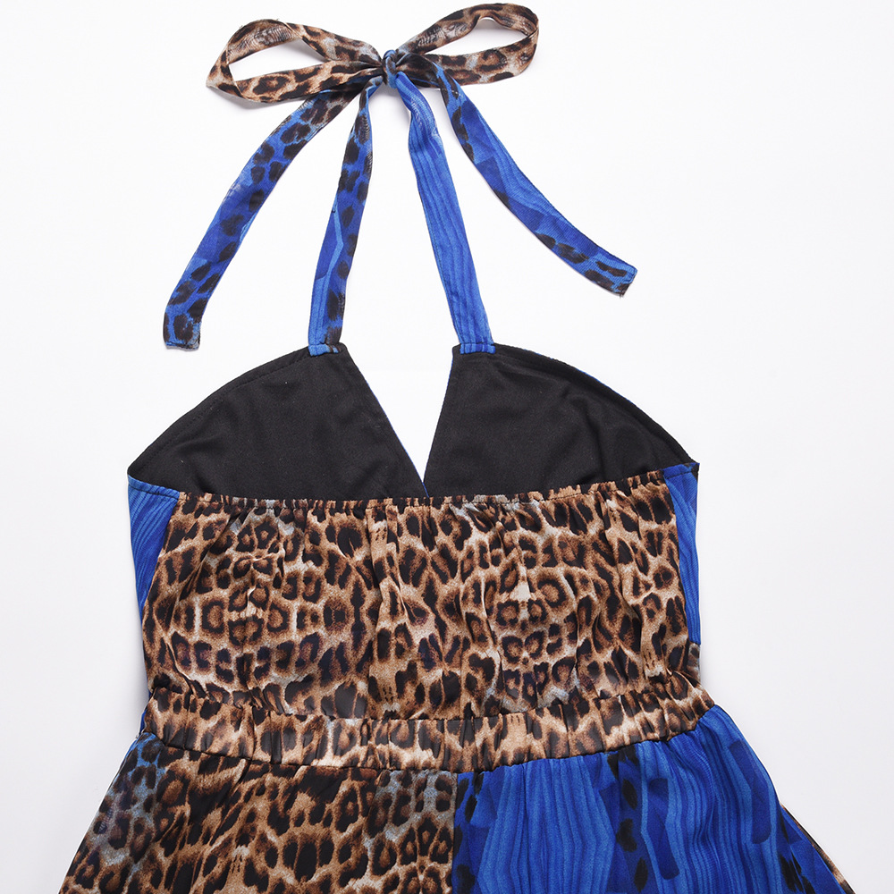 Женское платье на бретельках, без рукавов, с вырезом-подвеской, пэчворк, с а-подкладкой, на лето и осень, повседневное, уличное, леопардовое, миди