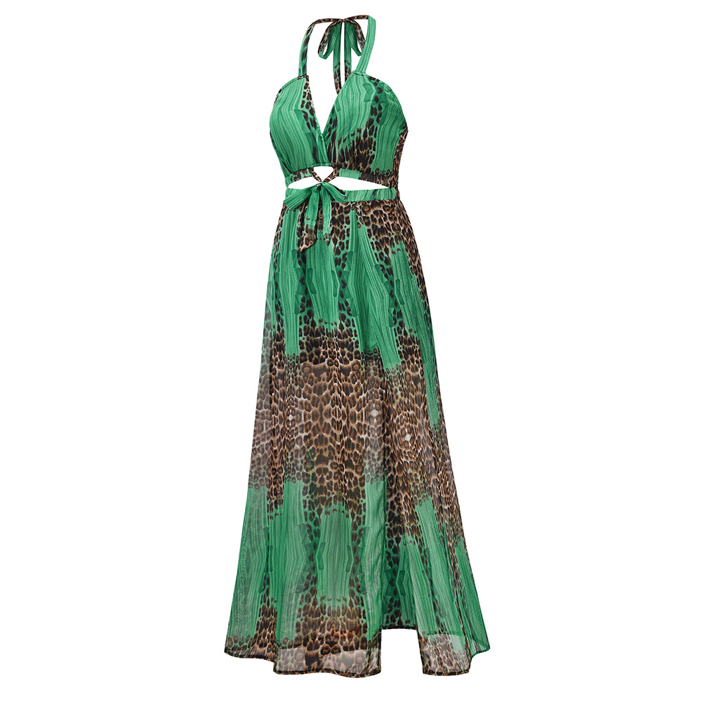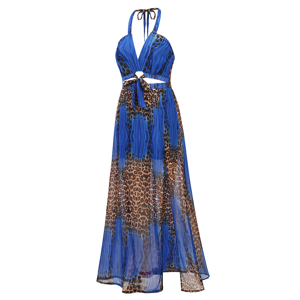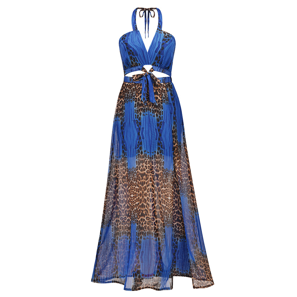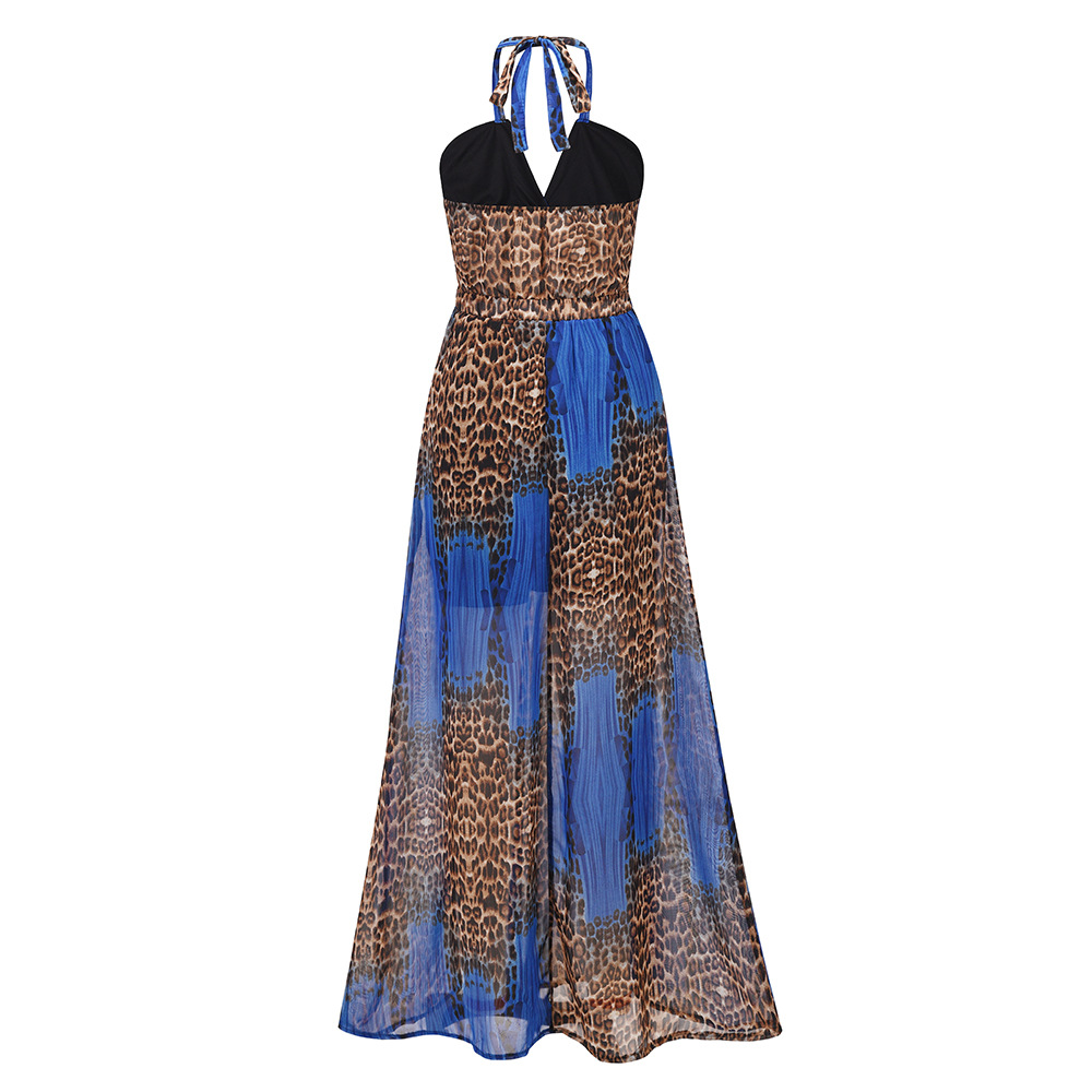 Женское платье на бретельках, без рукавов, с вырезом-подвеской, пэчворк, с а-подкладкой, на лето и осень, повседневное, уличное, леопардовое, миди