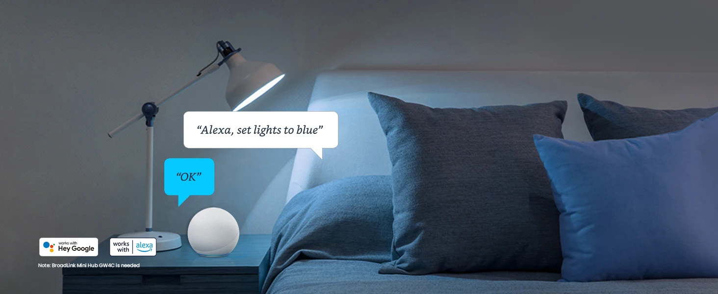 BroadLink SKE26/27 BLE Mesh умный стартовый комплект (Работает с приложением BroadLink BLE)* Начало работы в течение 1 секунды:Добавьте устройства в течение 1 секунды после включения светильник.* Мощная сеточная Сеть:Продлевает диапазон сигнала до 500 м, покрывая весь ваш дом.* Яркие цветаДля того чтобы светильник на каждый момент: поверните изменение цвета светильник лампочка включения/выключения регулировки яркости дисплея кожу влагой, процедур, графики.*Голосовое управление:Работает с Alexa и Google Assistant.