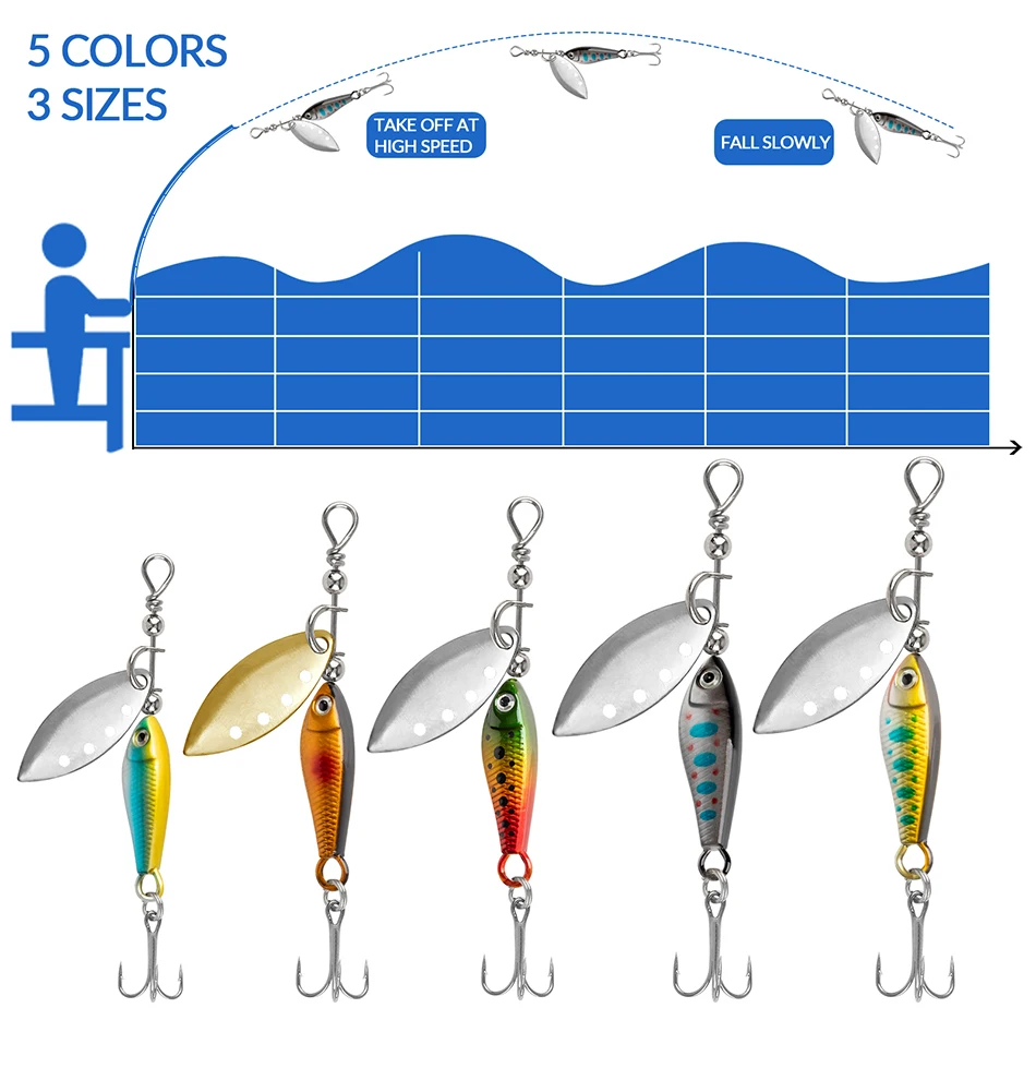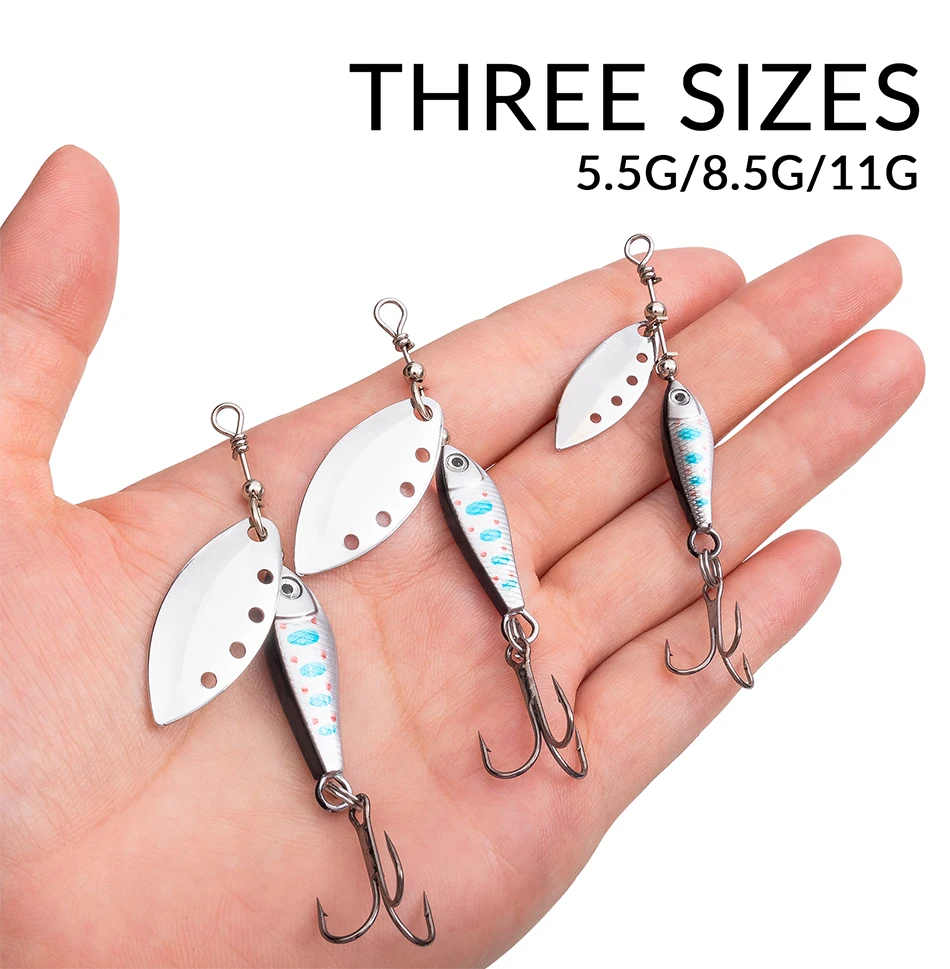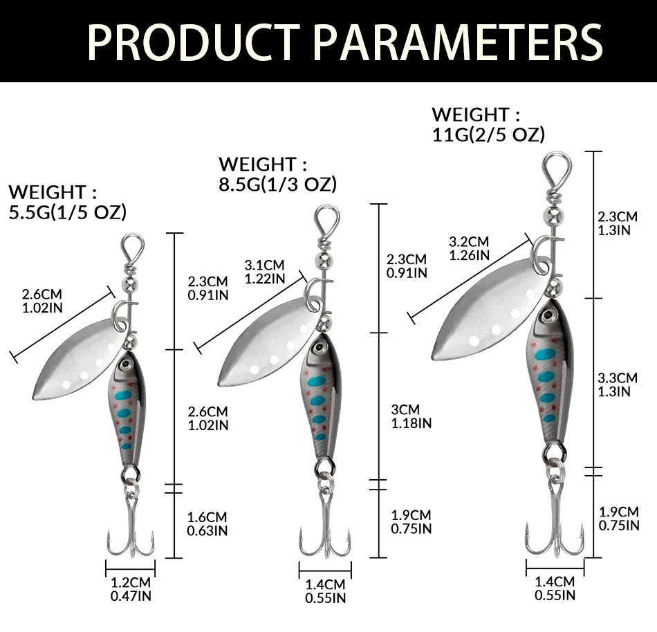 3. 【Application】металлическая рыболовная приманка может вращаться в воде, чтобы сделать шум и пульсацию, чтобы привлечь рыбу, также она может отражать светильник в воде, как маленькая рыба, чтобы привлечь большую рыбу.