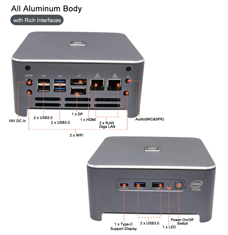 - Dual RJ45 Gigabit LAN ports and support 2.4G/5G AC WiFi & Blutooth.
