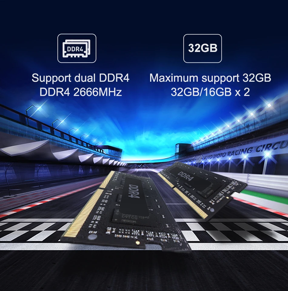 - 2 x SODIMM DDR4 memory slot up to 64GB.