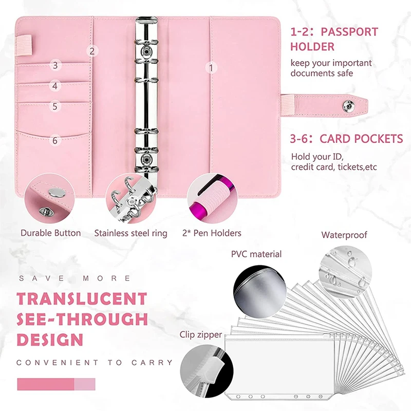[Гибкий в использовании]: бюджетный переплет A6 имеет шестикольцевой дизайн, вам нужно только нажать на верхние и нижние концы кольцевой пряжки, чтобы открыть его; В дополнение к прозрачным карманам и разделам бюджета, которые мы высылаем, Этот переплет также подходит для большинства из шести колец A6 бумаги свободного листа на рынке, вы также можете сделать его в блокнот для записи вашей жизни