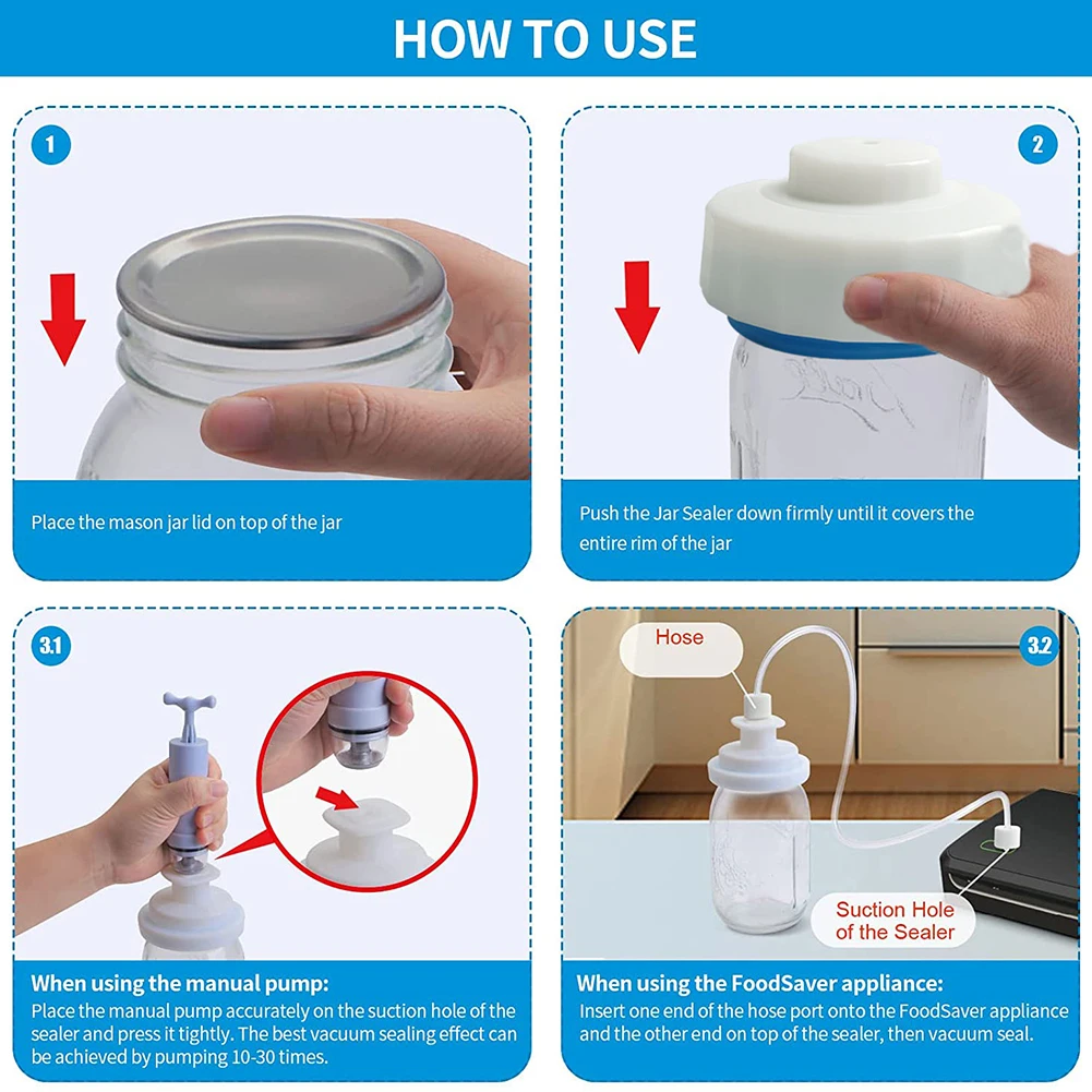 Mason Jar Sealer вакуумный набор с широким горлышком Mason баночки консервная упаковка для хранения еды Кухонные гаджеты аксессуарыСпецификация: Материал изделия: пластик Размер изделия Малый размер: 8,5*4,5 см/3,35 * 1.77in Большой Размер Чехла: 10,5*4 см/4,13 * 1.57in Вес упаковки: 316 г Упаковка: коробка Примечание: В связи с различиями мониторов и эффектами освещения реальный цвет товара может немного отличаться от цвета на фотографиях. Спасибо! Возможны отклонения в 1-2 см вследствие измерений вручную.
