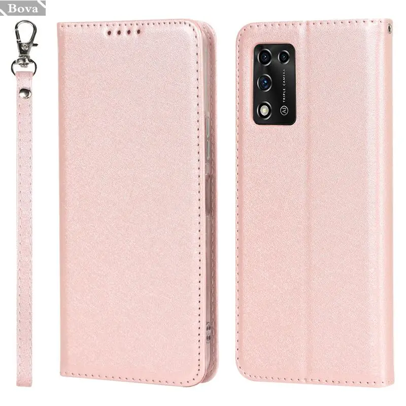 Блестящий чехол из искусственной кожи в шелковом стиле для ZTE Libero 5G II раскладной Магнитный чехол, чехол с магнитной адсорбцией, Матовый сенсорный чехол для телефона + 1 шнурок