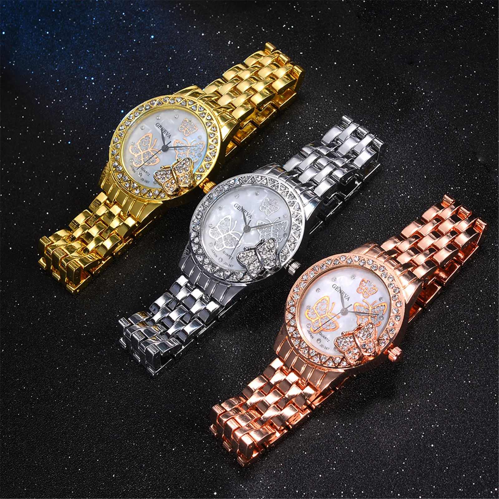 Роскошные полностью алмазные стальные полосы Ms кварцевые аналоговые часы с бриллиантами